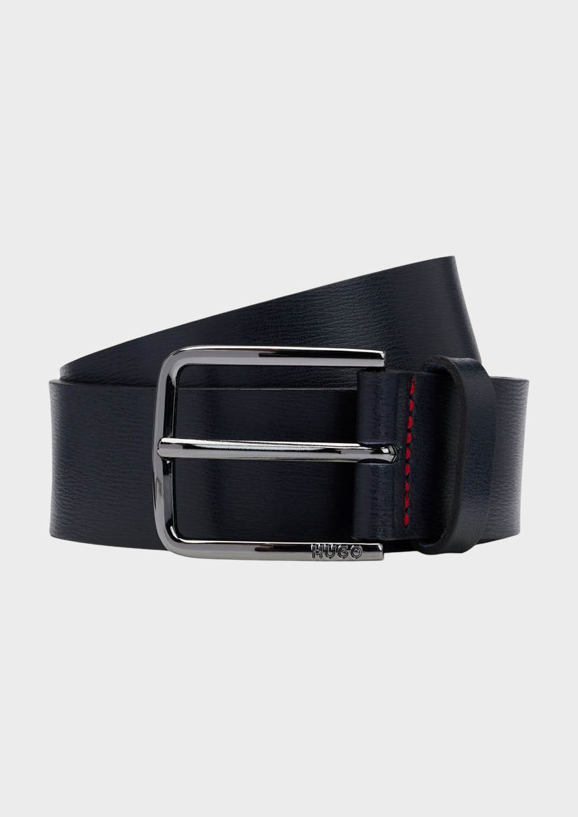 Ремень HUGO Menswear шириной 3,5 см, выполненный из роскошной итальянскойкожи с тонкой текстурой. Оснащён полированной пряжкой с выгравированным логотипом. Красные прострочки.