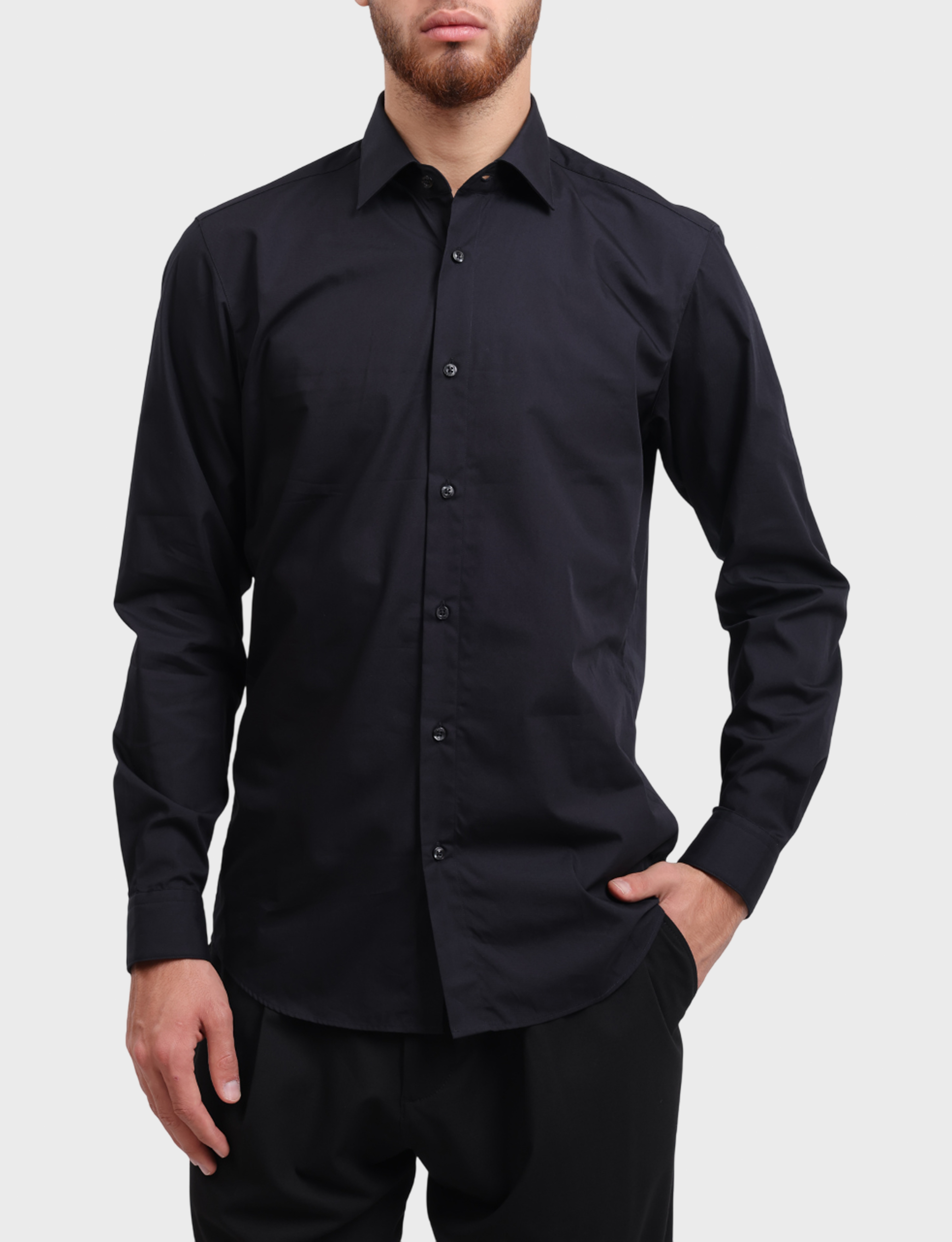 Мужская сорочка HUGO – Из натуральных материалов (100% хлопок). Черный базовый цвет легко сочетается со всеми элементами гардероба, подходит для любого случая благодаря универсальности и элегантности.