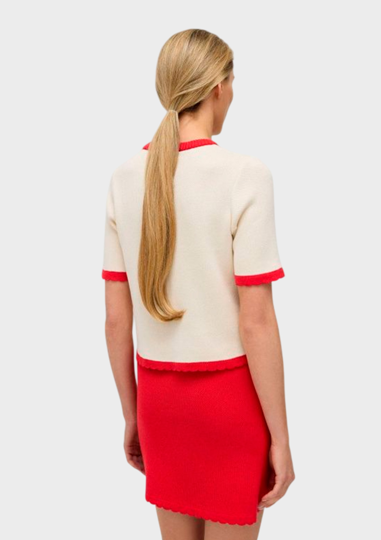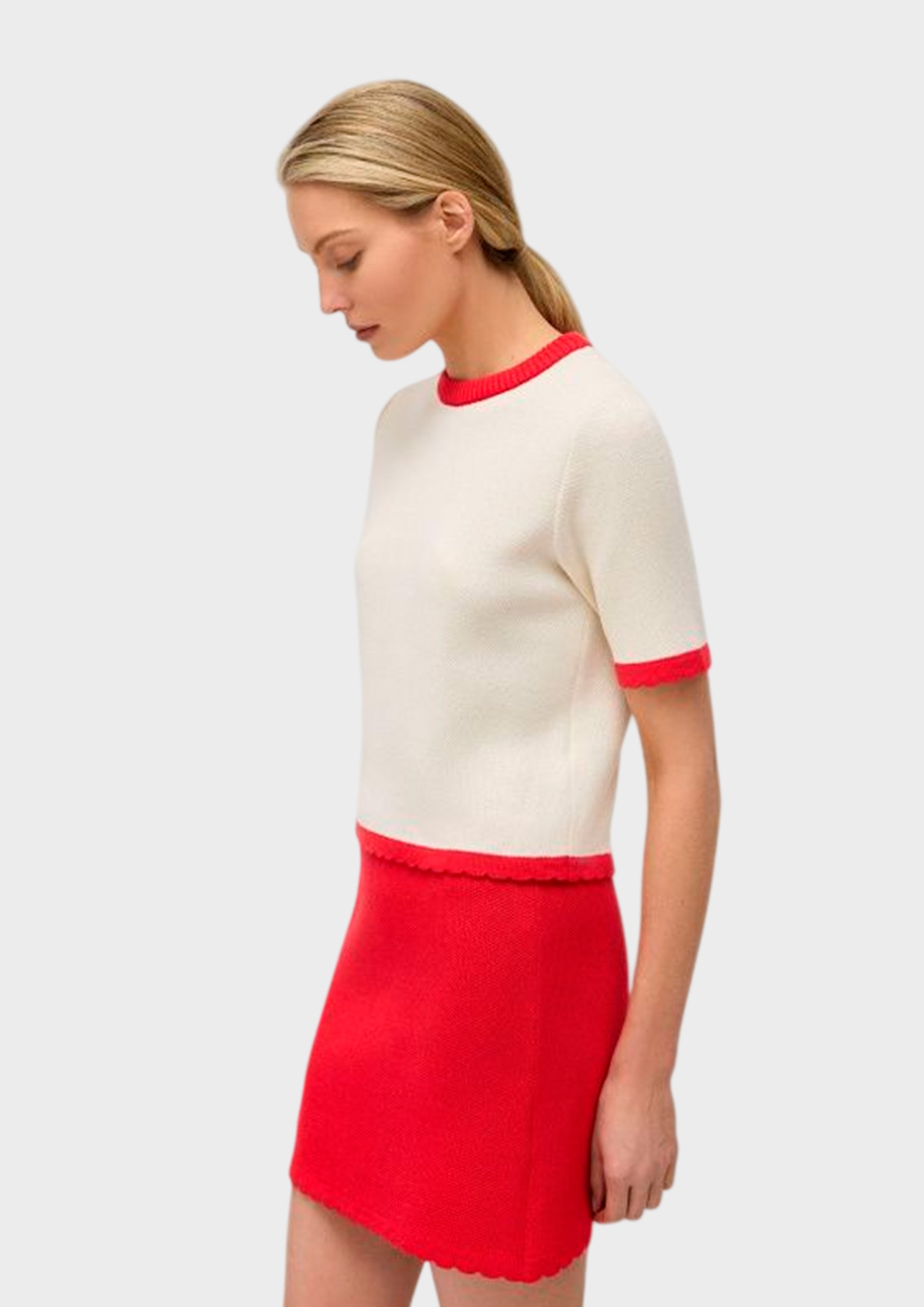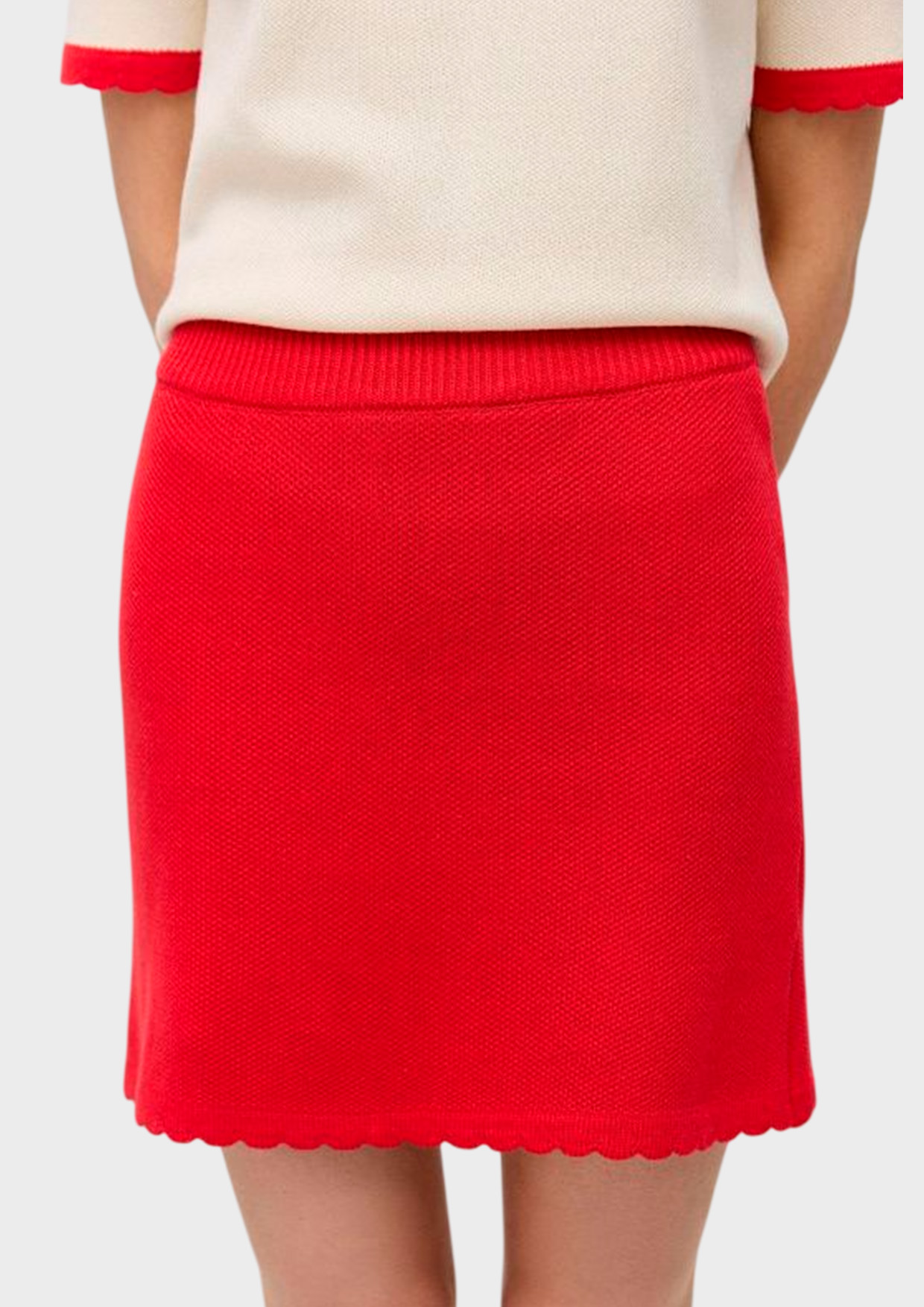 Юбка-мини связана из натурального хлопка с легкой примесью акрила для стабильности и долговечности.
