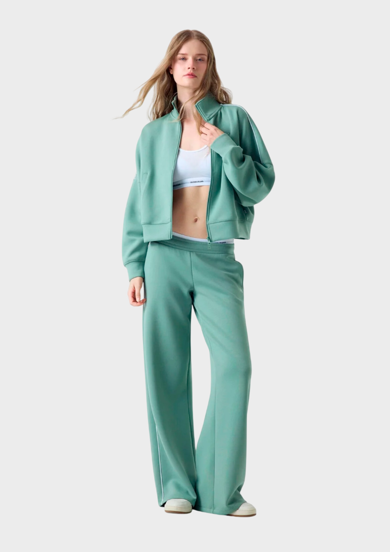 Женская олимпийка от бренда GUESS Jeans сезона весна-лето 2026 – стильный выбор для современных девушек! Яркий зелёный цвет подчеркнёт индивидуальность, а сочетание материалов обеспечит комфорт при носке. Удобная посадка по фигуре, современный дизайн и высокое качество пошива делают эту модель незаменимой частью гардероба.