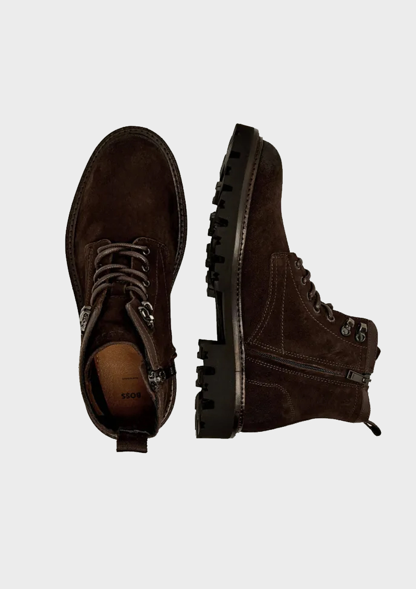 Мужские ботинки BOSS Julyo_Halb_sdlt - верх из натуральной кожи обеспечивает долговечность и защиту от непогоды, а подошва из ЭВА гарантирует лёгкость и устойчивость к низким температурам. Внутренний слой из комбинации полиамида и полиуретана создаёт оптимальный микроклимат стопы.