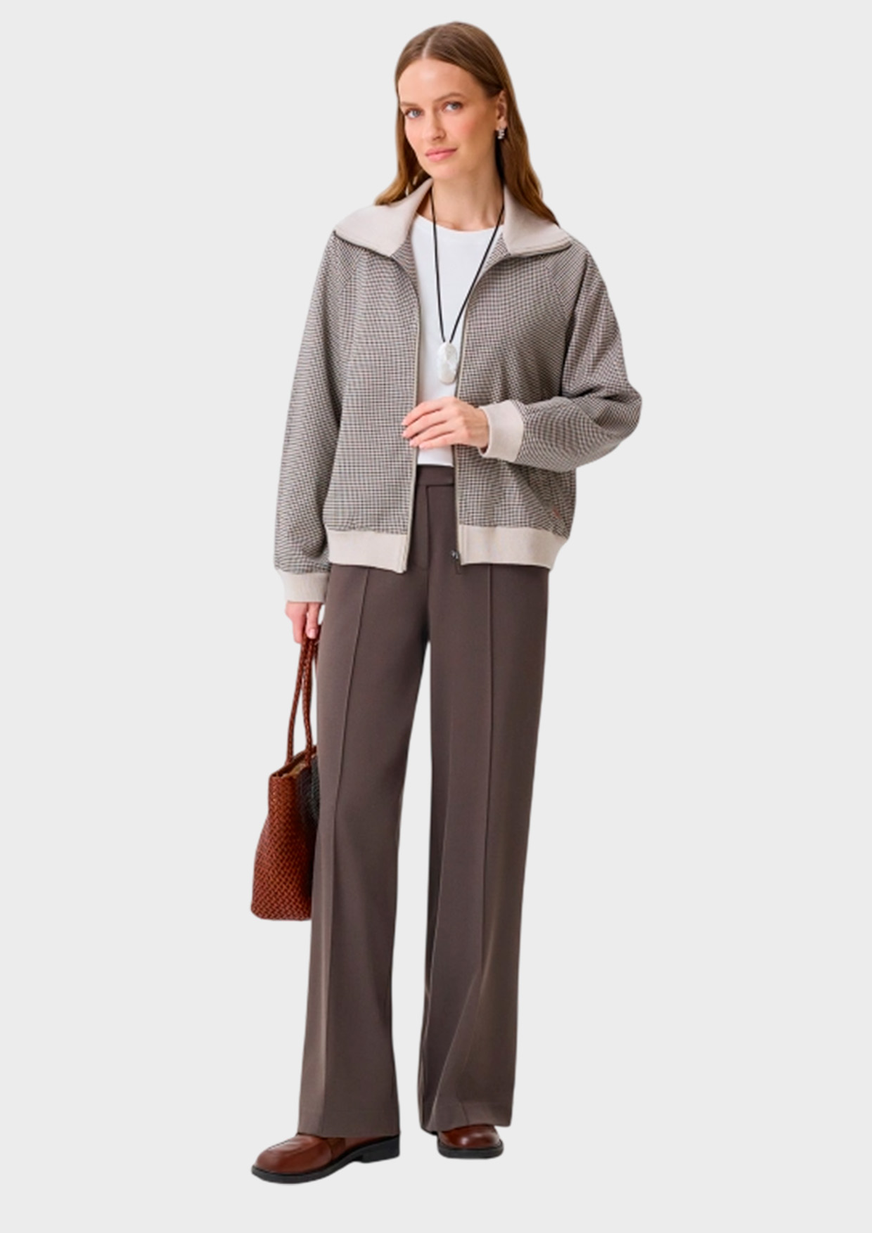 Брюки с застроченными стрелками. Прямой силуэт. Застежка на молнию и крючок. Боковые карманы в швах. В составе вискоза.