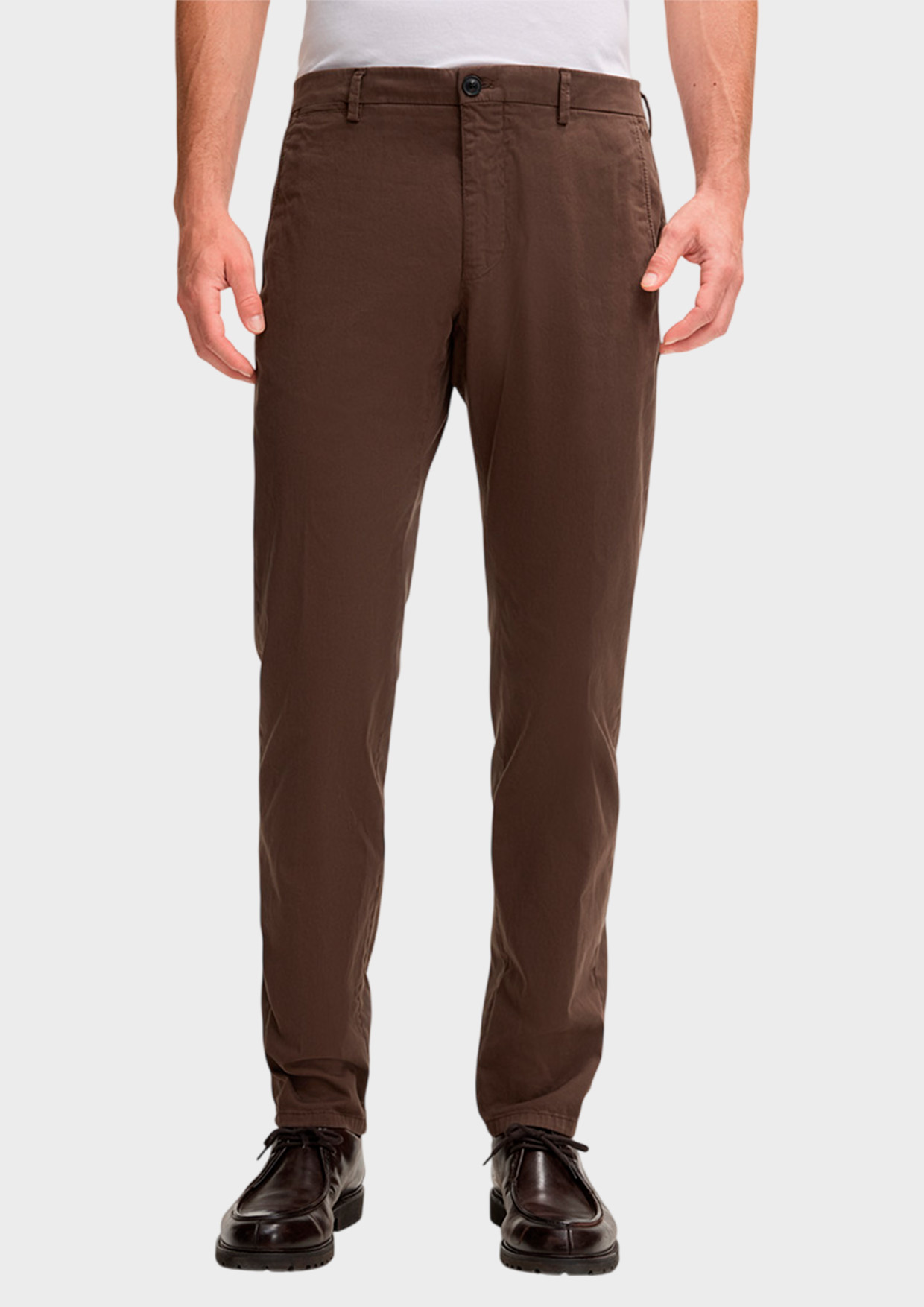 Мужские брюки-чинос коричневого цвета – универсальная часть гардероба сезона. Изготовлены из дышащего материала, обеспечивающего комфорт при носке. Стильный дизайн позволяет сочетать их как со спортивной обувью и свитером для непринужденного образа, так и с классической рубашкой и туфлями для делового стиля.
