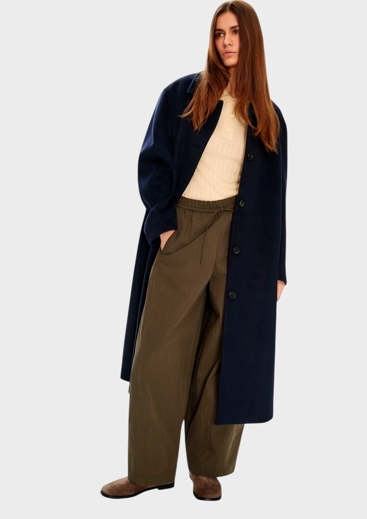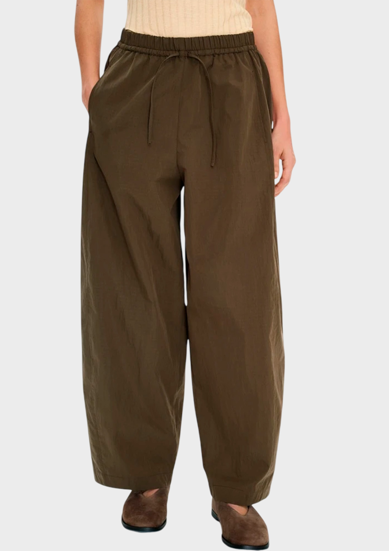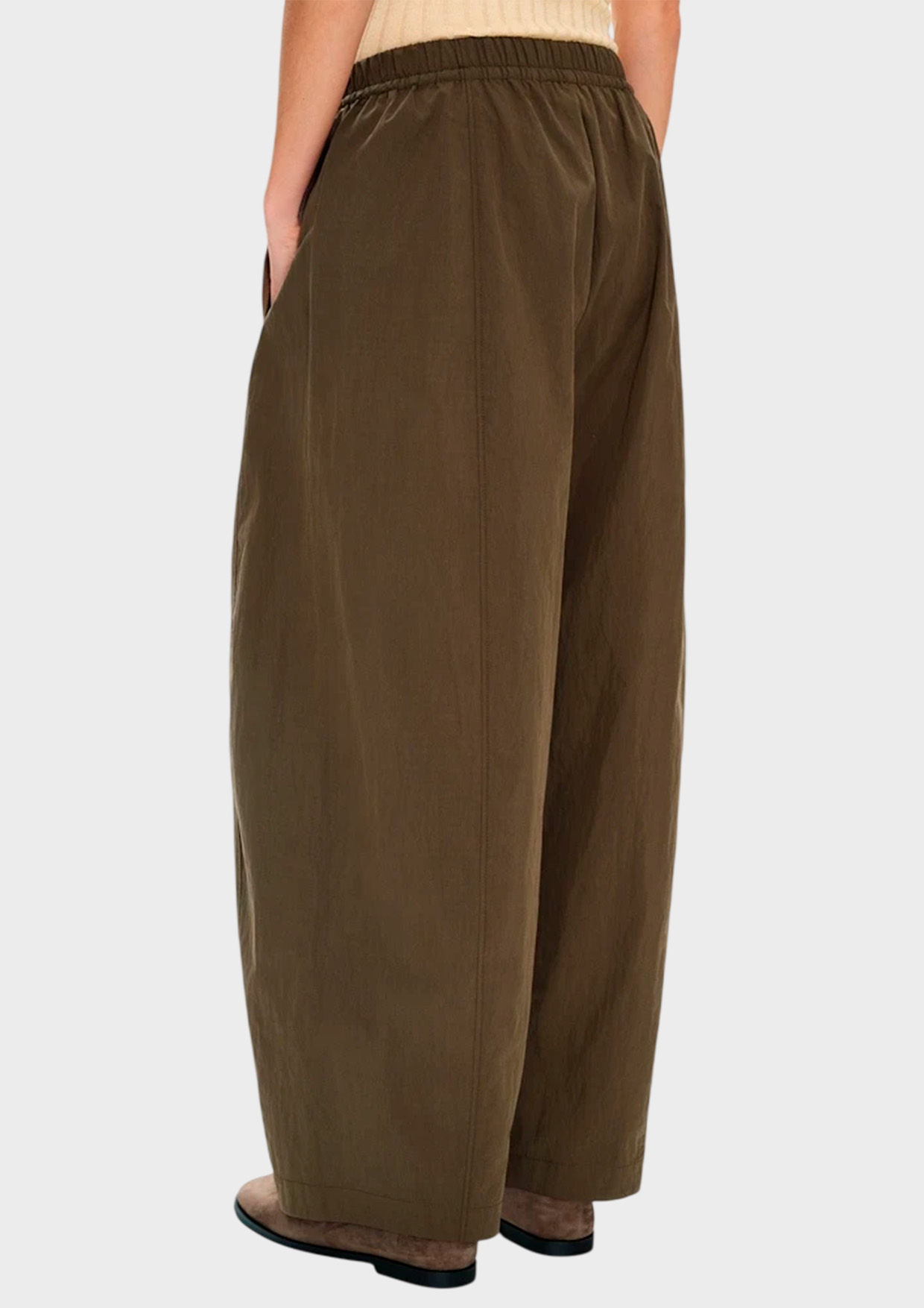 Брюки формы barrel-leg с мягким расширением в области бёдер и лёгким сужением к низу. Хлопок хорошо держит форму и остаётся комфортным в повседневной носке, так как не требует пристального внимания. Небольшие помятости только прибавят шарма этой расслабленной модели. Свободный крой формирует актуальный округлый силуэт и не ограничивает движения.
