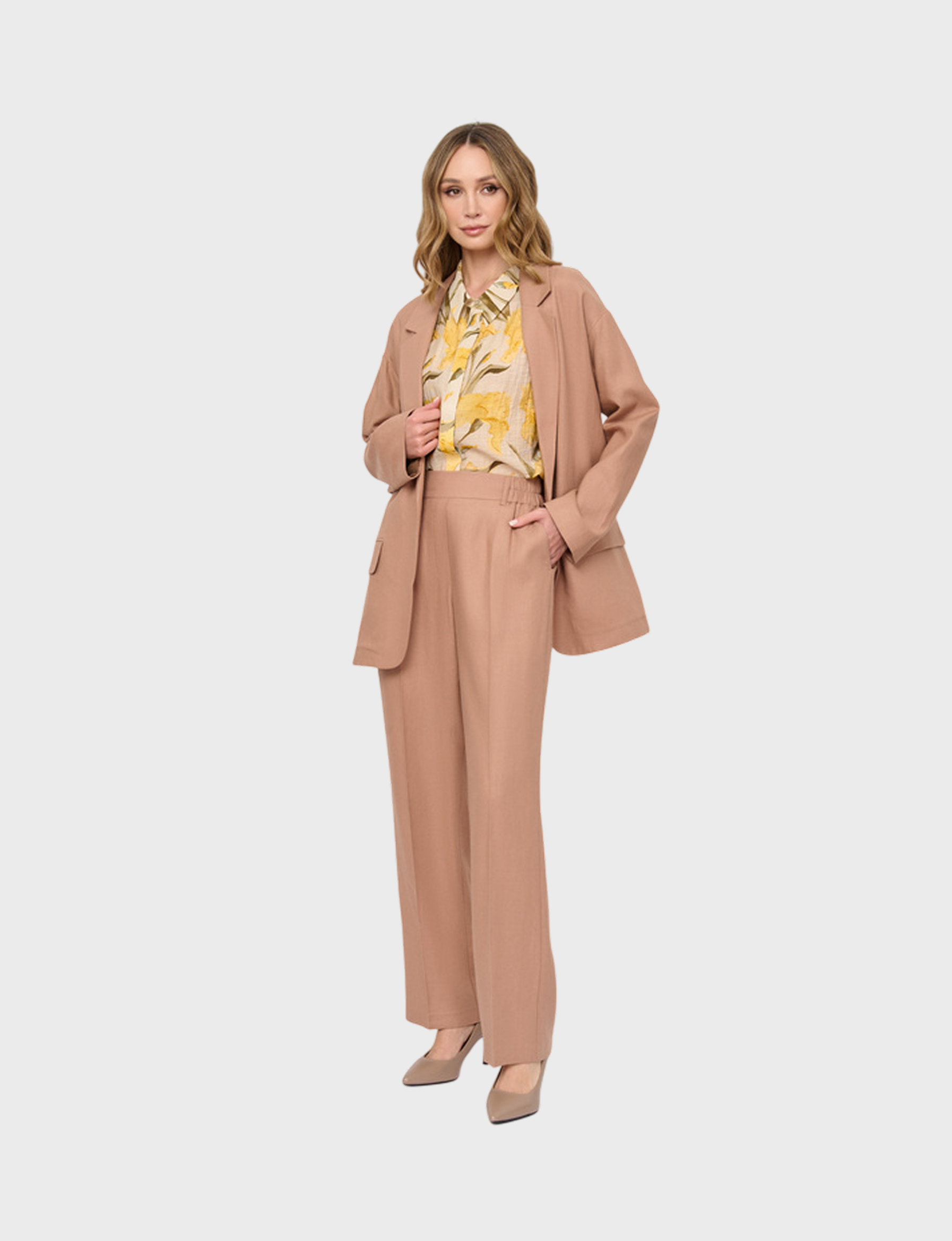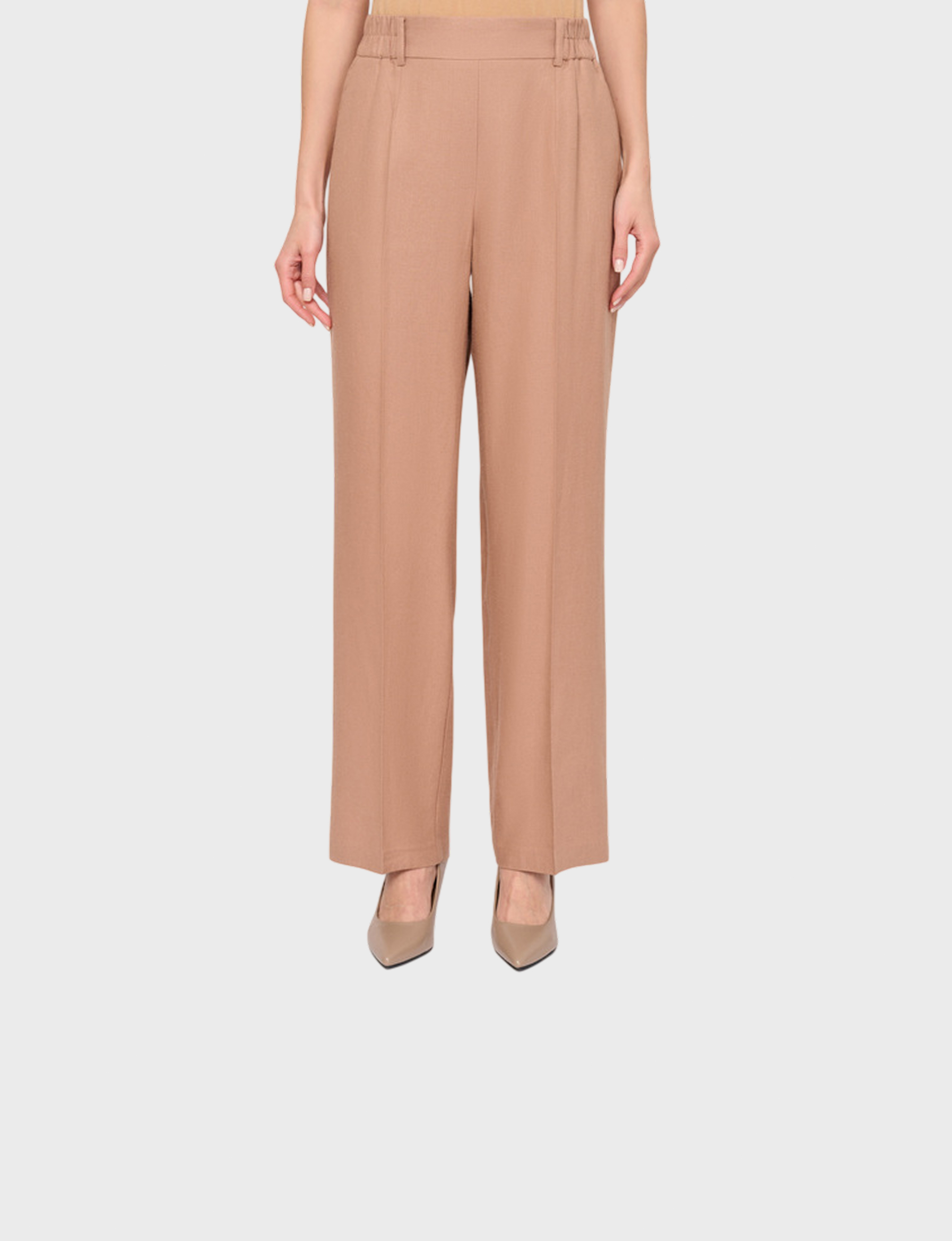 Женские брюки бренда Franco Vello подойдут для комфортного отдыха и стильных городских образов. Изготовлены из дышащей ткани (55% лён, 45% тенсель), обеспечивающей свежесть и сухость кожи в жаркое время года. В меру свободный крой подчеркивает фигуру, а коричневый цвет легко сочетается с различными верхами и аксессуарами.