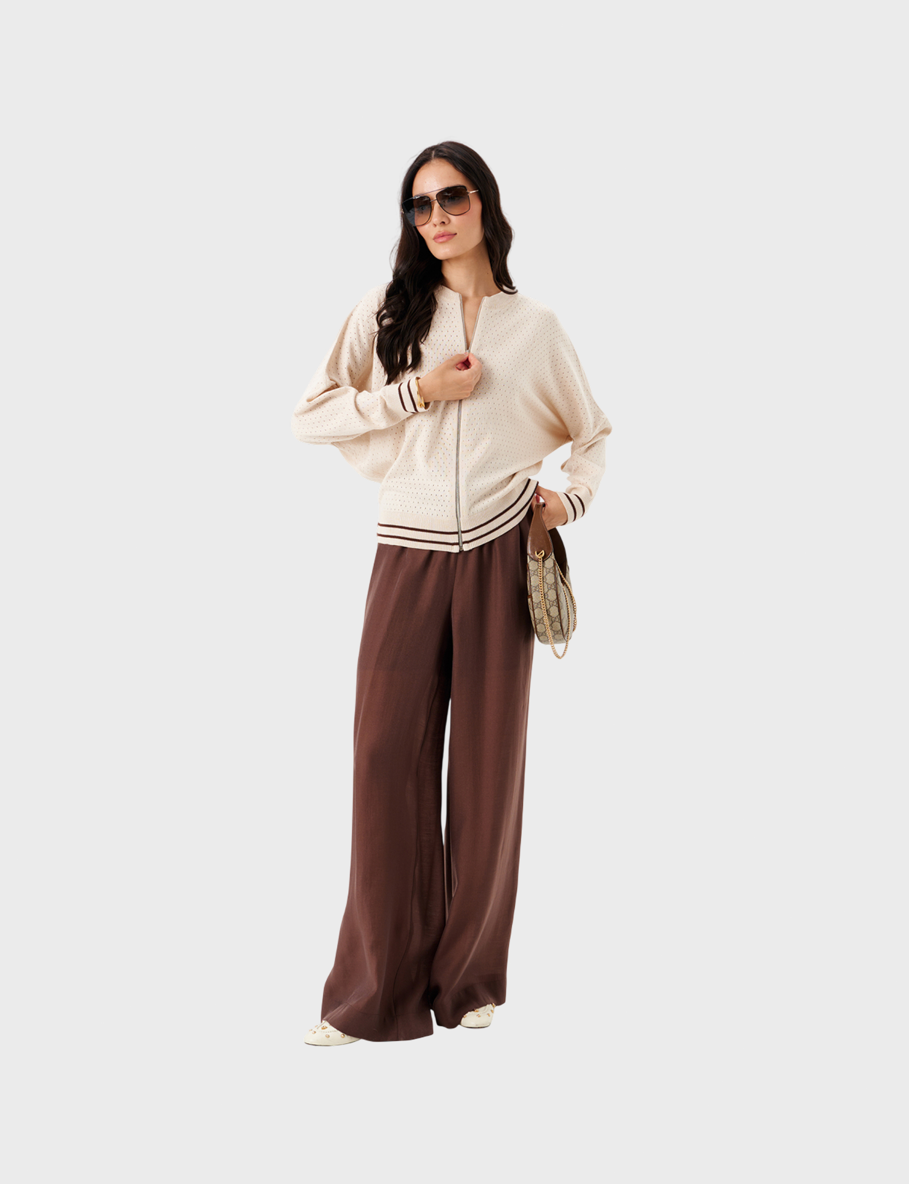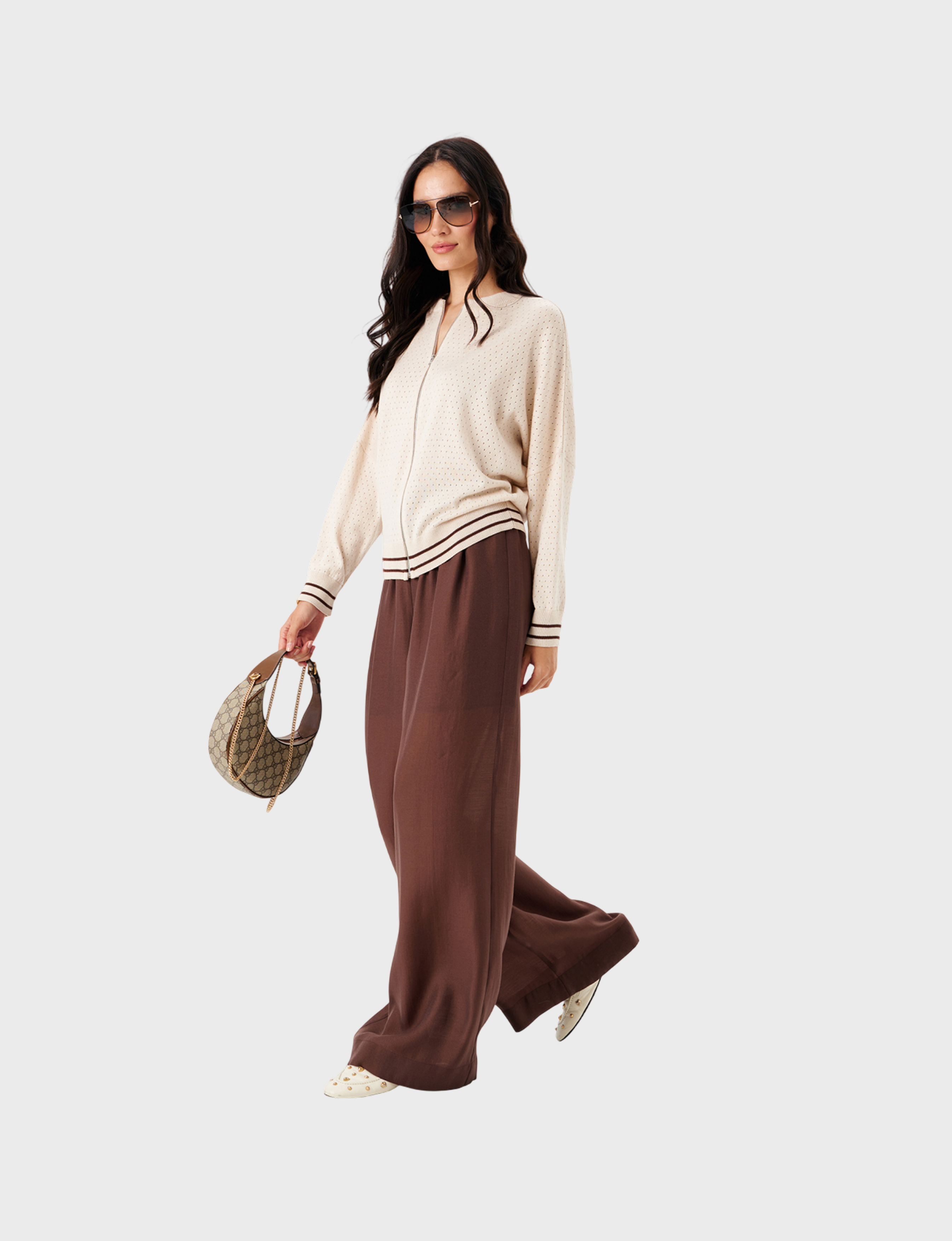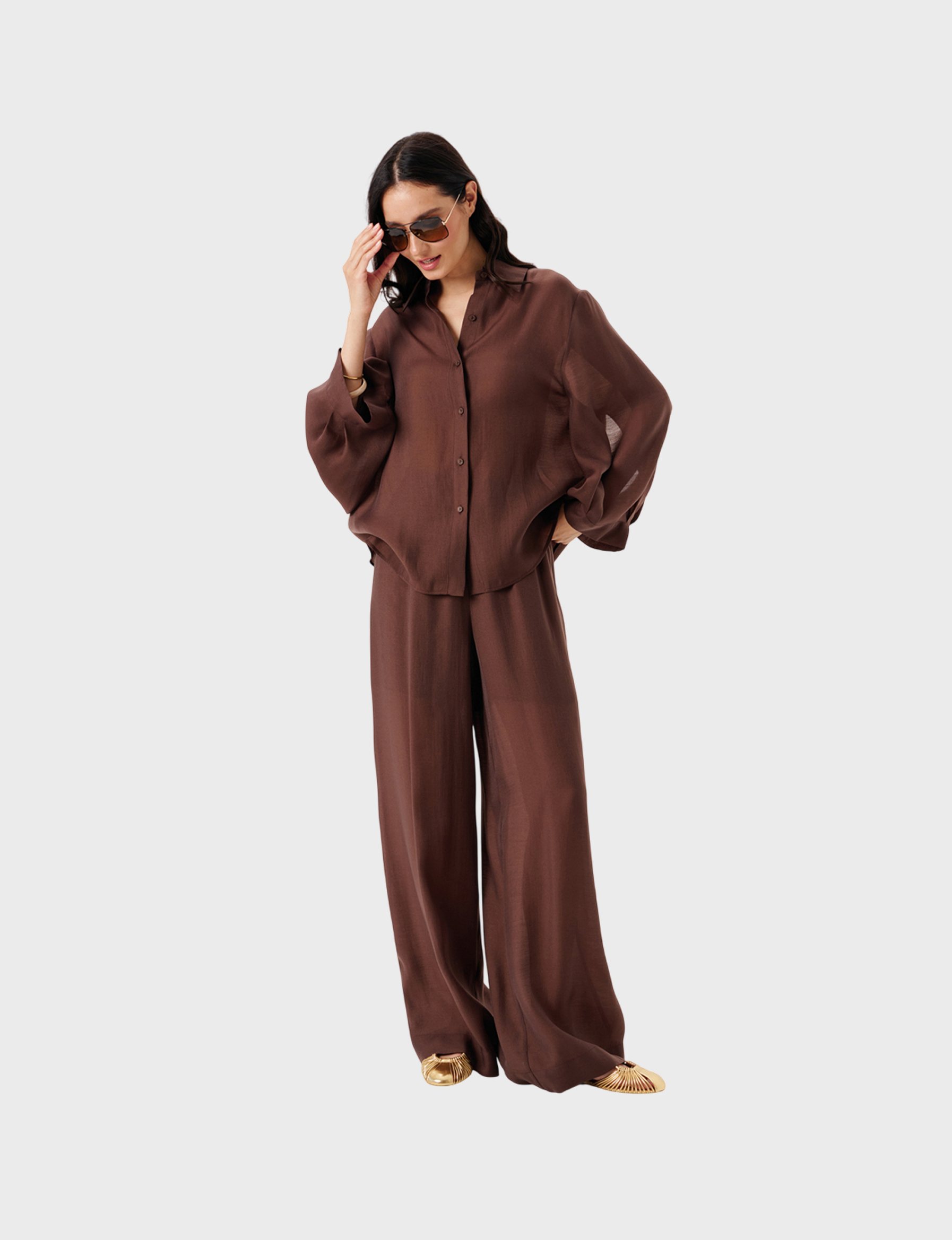 Брюки NOCHE MIO CLIVIA – ваш идеальный выбор комфорта и стиля благодаря сочетанию лиоцелла (70%) и полиэстера (30%). В коричневом оттенке они легко впишутся в любой гардероб, подчеркивая индивидуальность и элегантность.