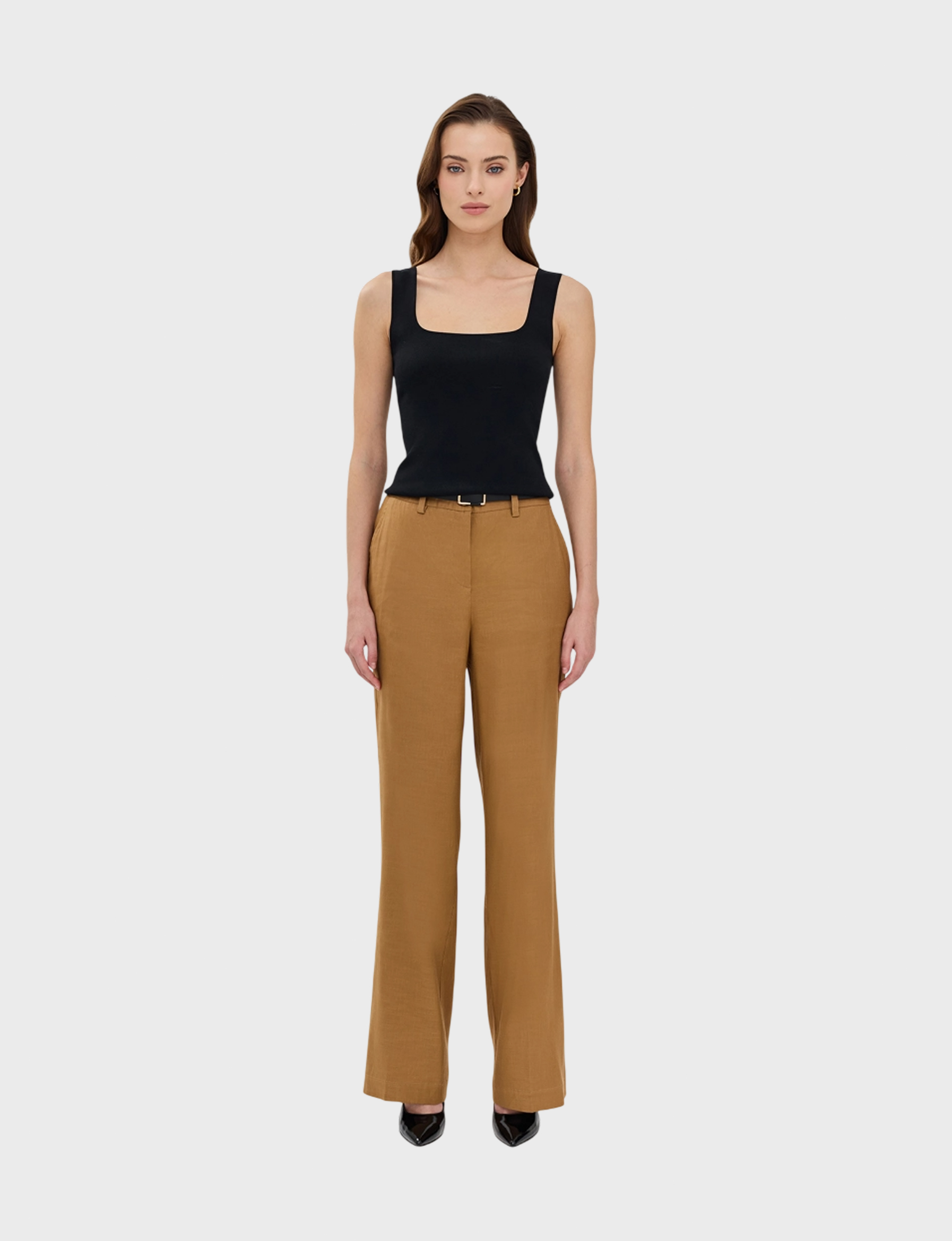 Женские брюки бренда SAVAGE — стиль, комфорт и качество! Эти коричневые брюки из смеси льна (55%), вискозы (42%) и спандекса (3%) подарят вам ощущение свободы движений и прохлады в жаркую погоду.