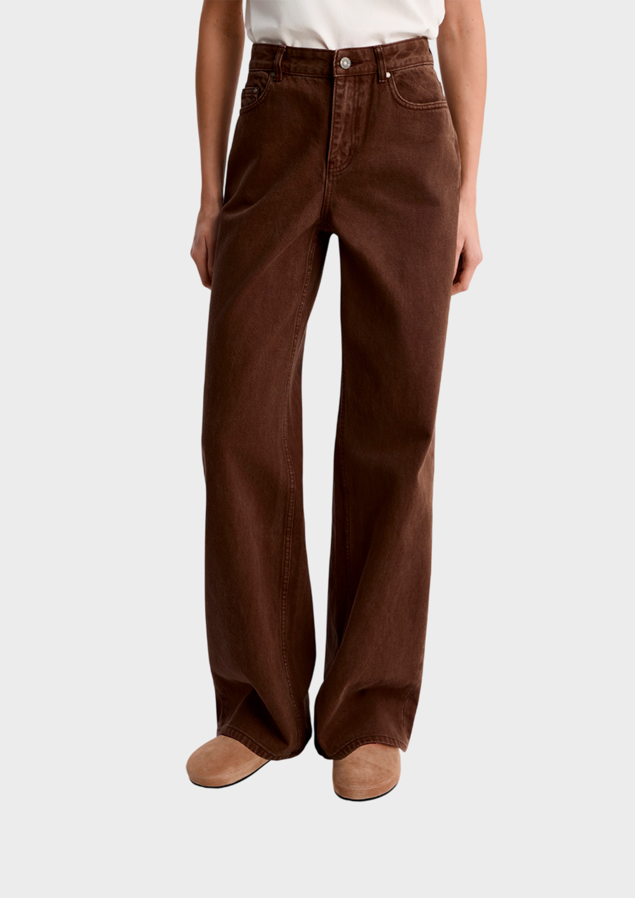 Джинсы свободного кроя, аккуратно облегающие бедра — один из наших фитов-бестселлеров. Базовая модель на высокой посадке. Свободные брючины немного расширяются к низу. Изделие дополнено пятью карманами. Застегивается на молнию и металлическую пуговицу.