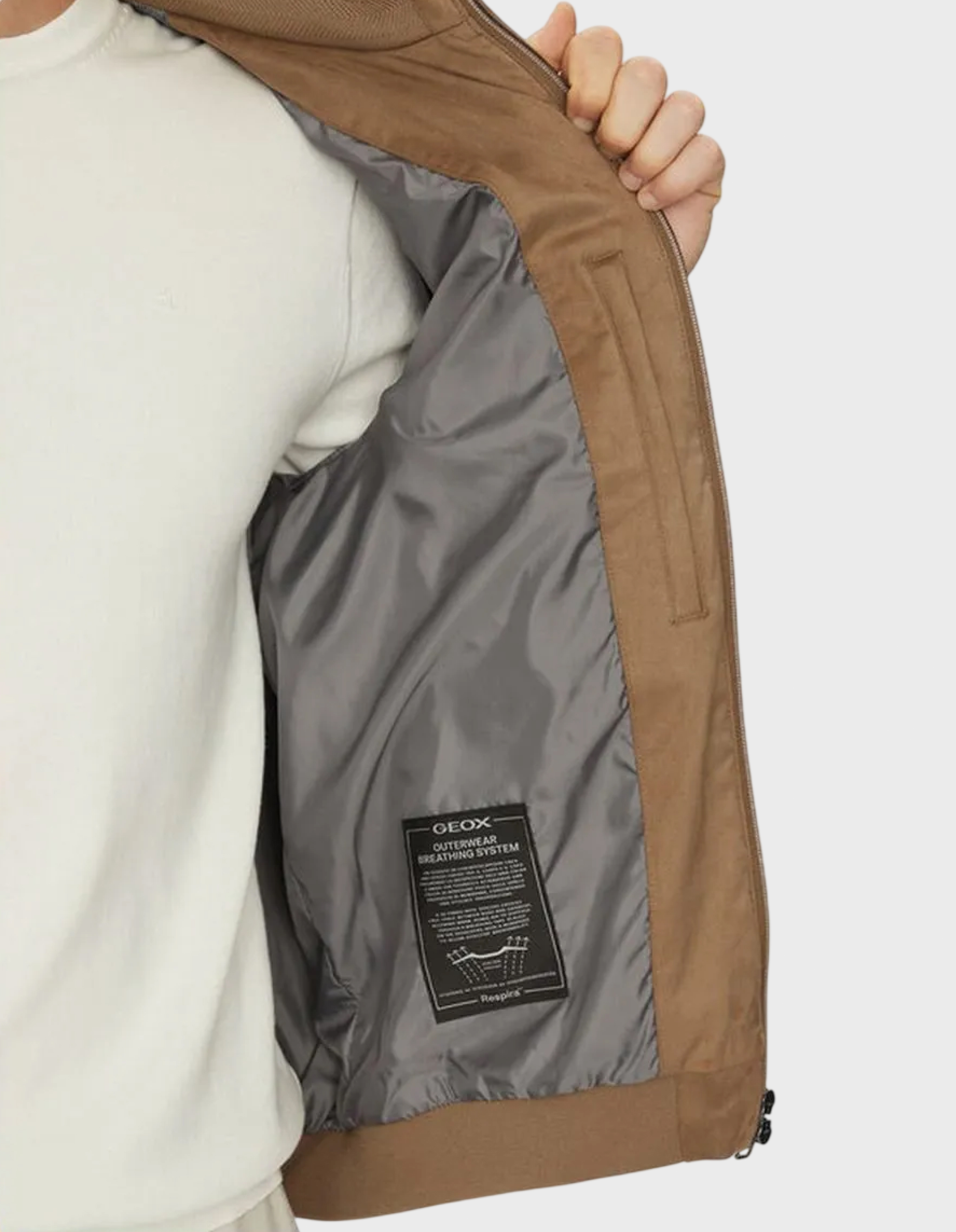 Мужская куртка от GEOX в коричневом исполнении — Подходит для повседневного ношения благодаря стильному дизайну и универсальному цвету. Защищает от непогоды, обеспечивая тепло и сухость даже в прохладную погоду.