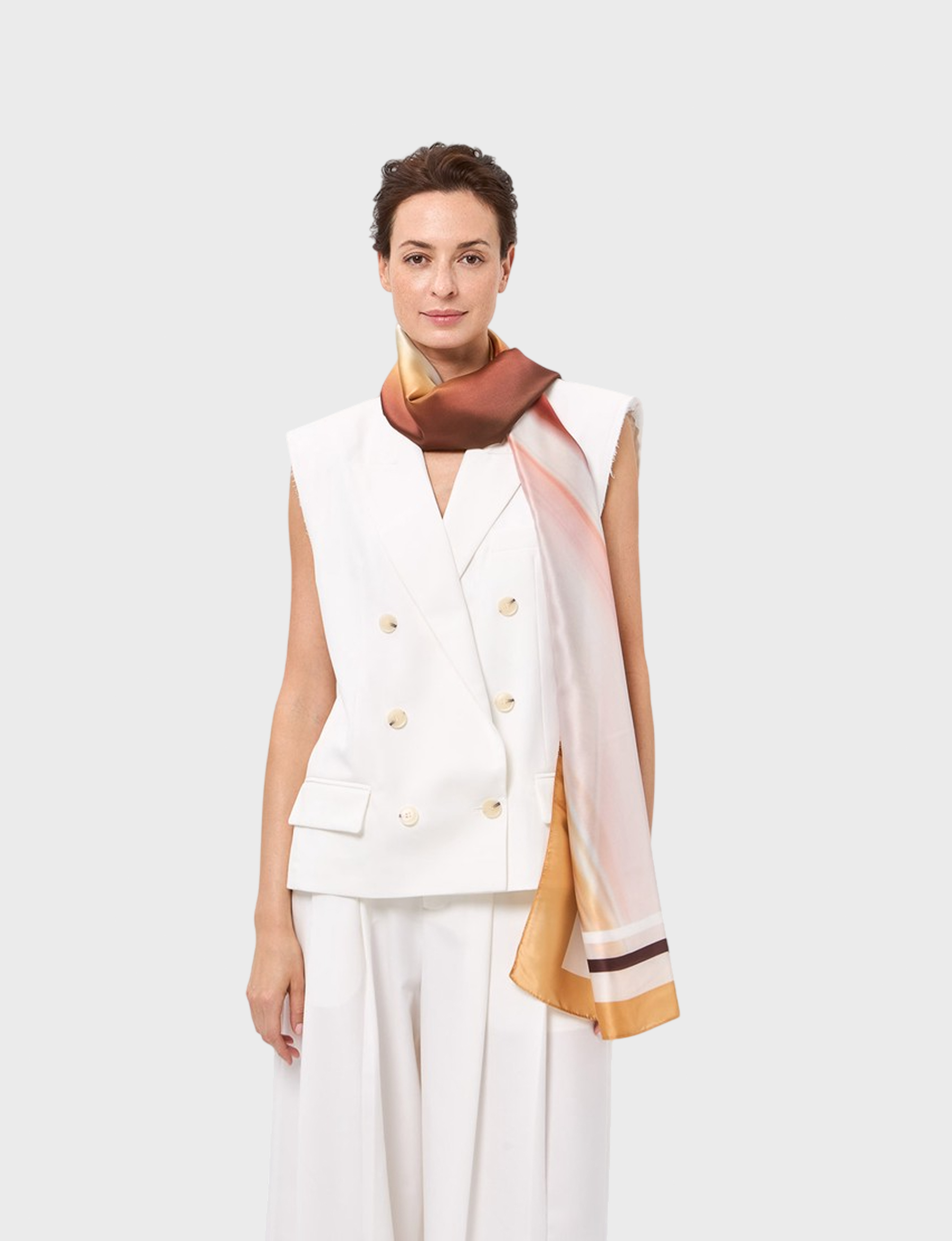 Палантин LABBRA! Размер 70x180 см идеально подчеркнёт вашу фигуру, а нежные оттенки коричневого добавят образу изысканности. Шёлково-вискозная ткань (50/50%) подарит приятные ощущения при носке.