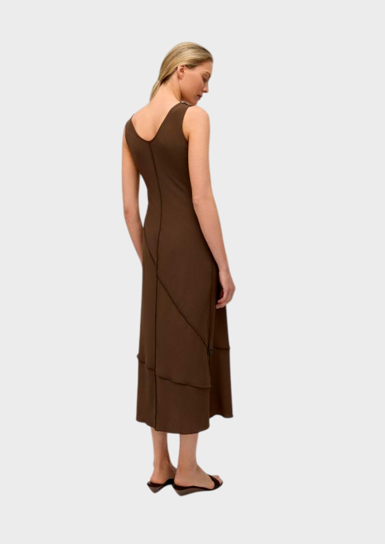 Платье-комбинация длины миди сшито из итальянского плательного крепа — из остатков силуэтных юбок.