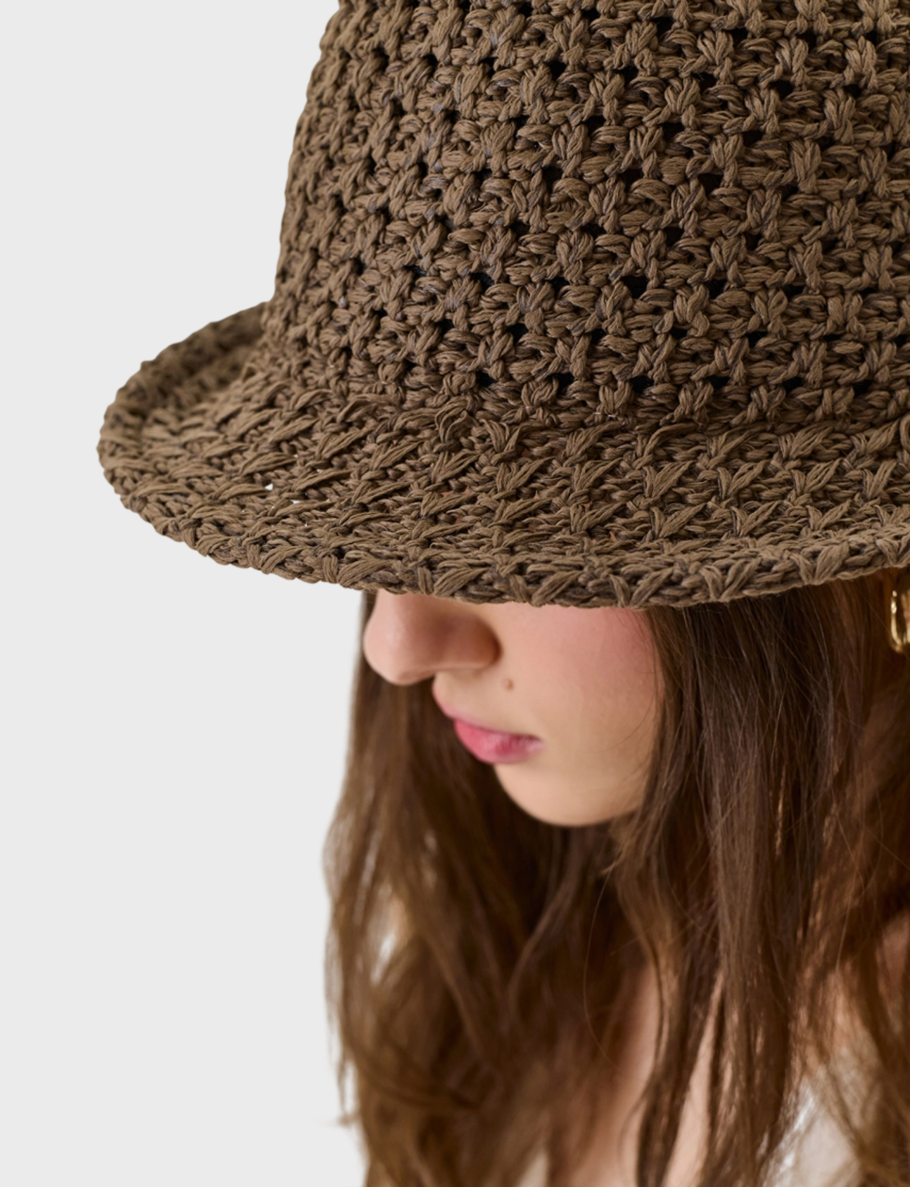 Шляпа с плетеным узором "елочка". Дополнена широкими загнутыми полями.