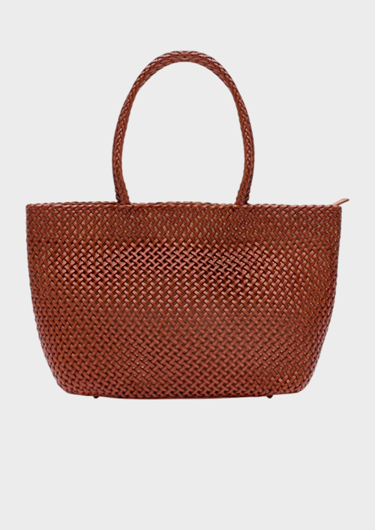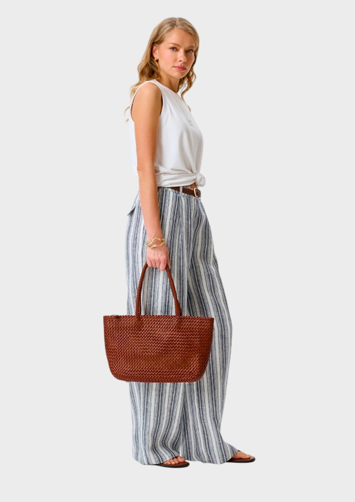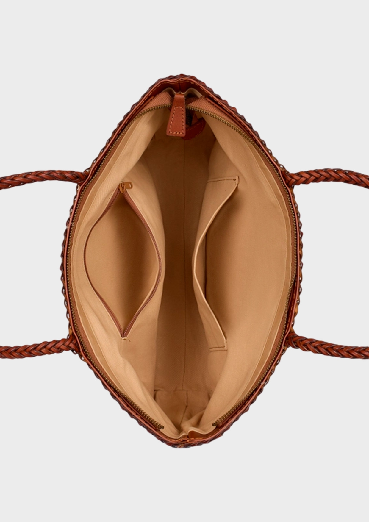 Плетеная сумка из натуральной кожи. Одно вместительное отделение. Внутренние карманы. Застежка на молнию. Две длинные плетеные ручки.