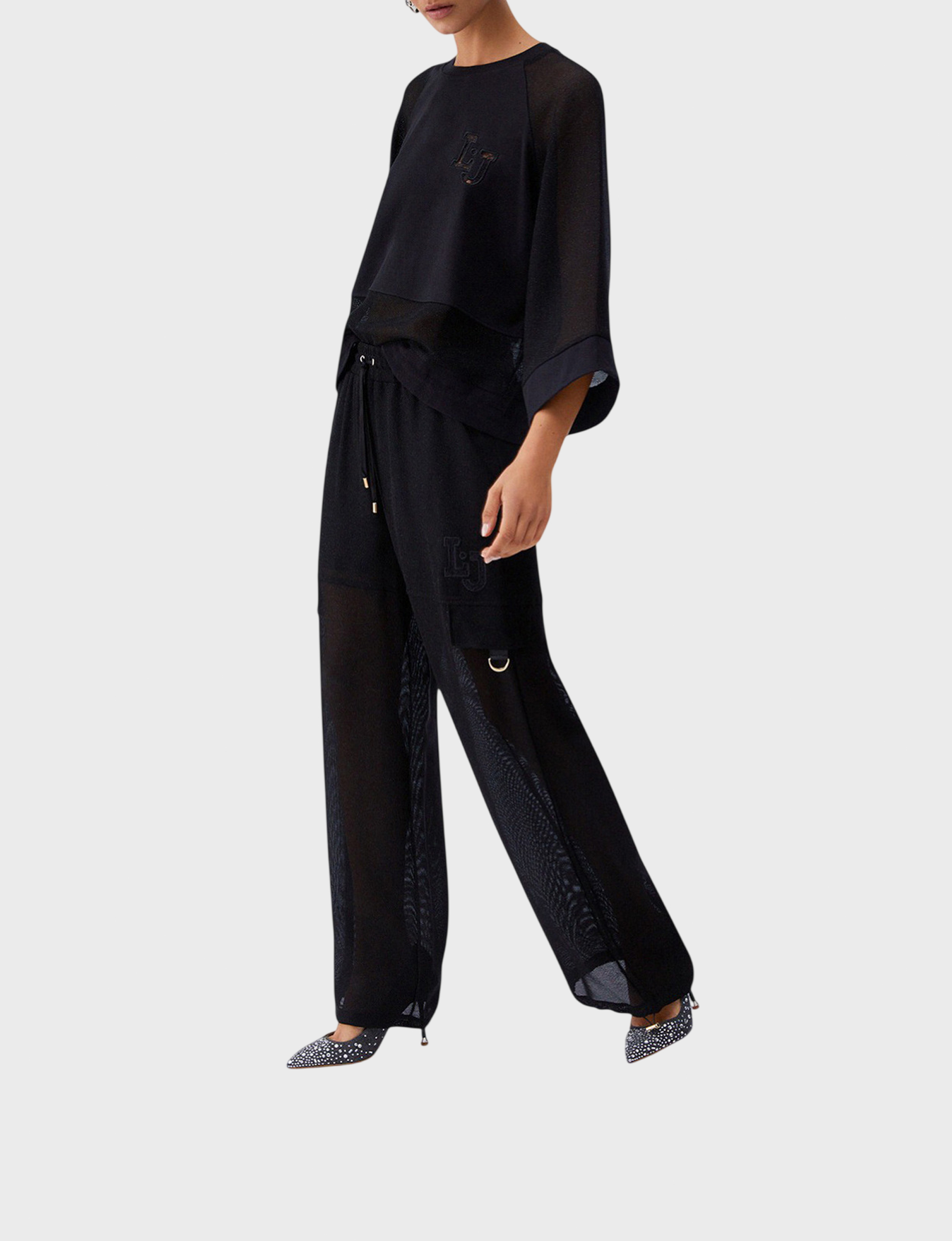 Чёрные брюки бренда Liu Jo – Изготовлены из приятного к телу материала (51% полиэстер, 49% вискоза), который обеспечивает свободу движений и сохраняет форму.