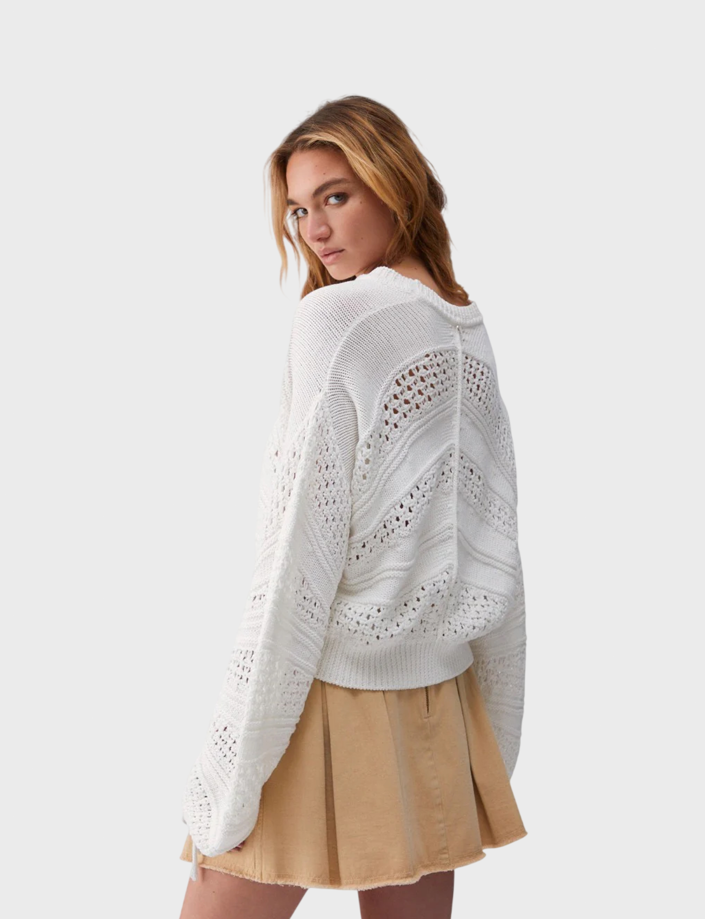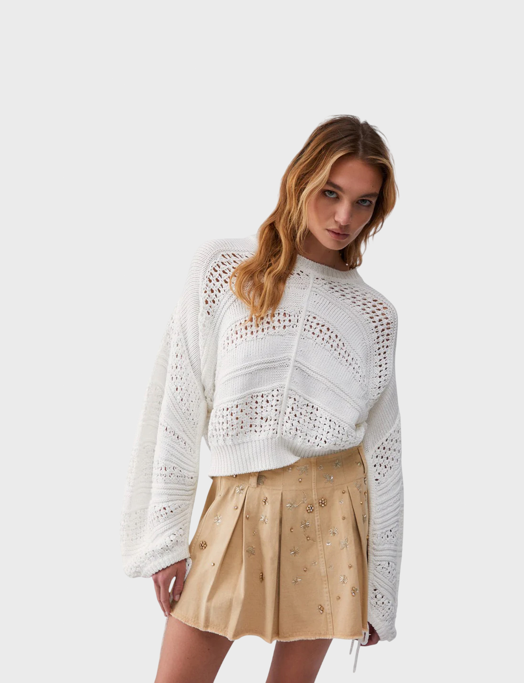 Женский джемпер белого цвета из 100% хлопка. Этот универсальный предмет гардероба подчеркнет ваш безупречный вкус и станет незаменимым элементом летнего образа. Эластичный и приятный к телу материал обеспечивает комфорт при носке, а актуальный дизайн позволит создавать модные луки, которые будут радовать вас каждый день!