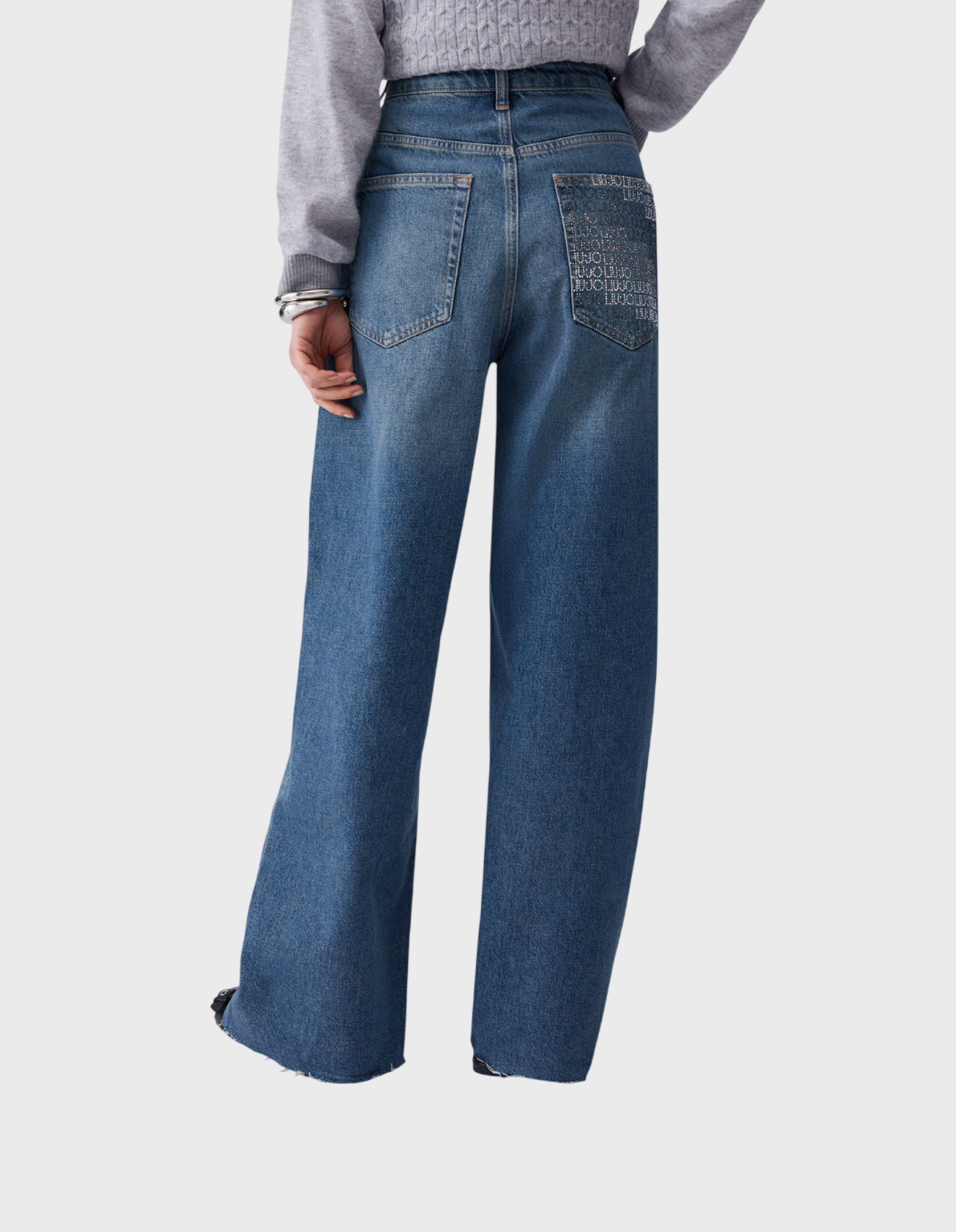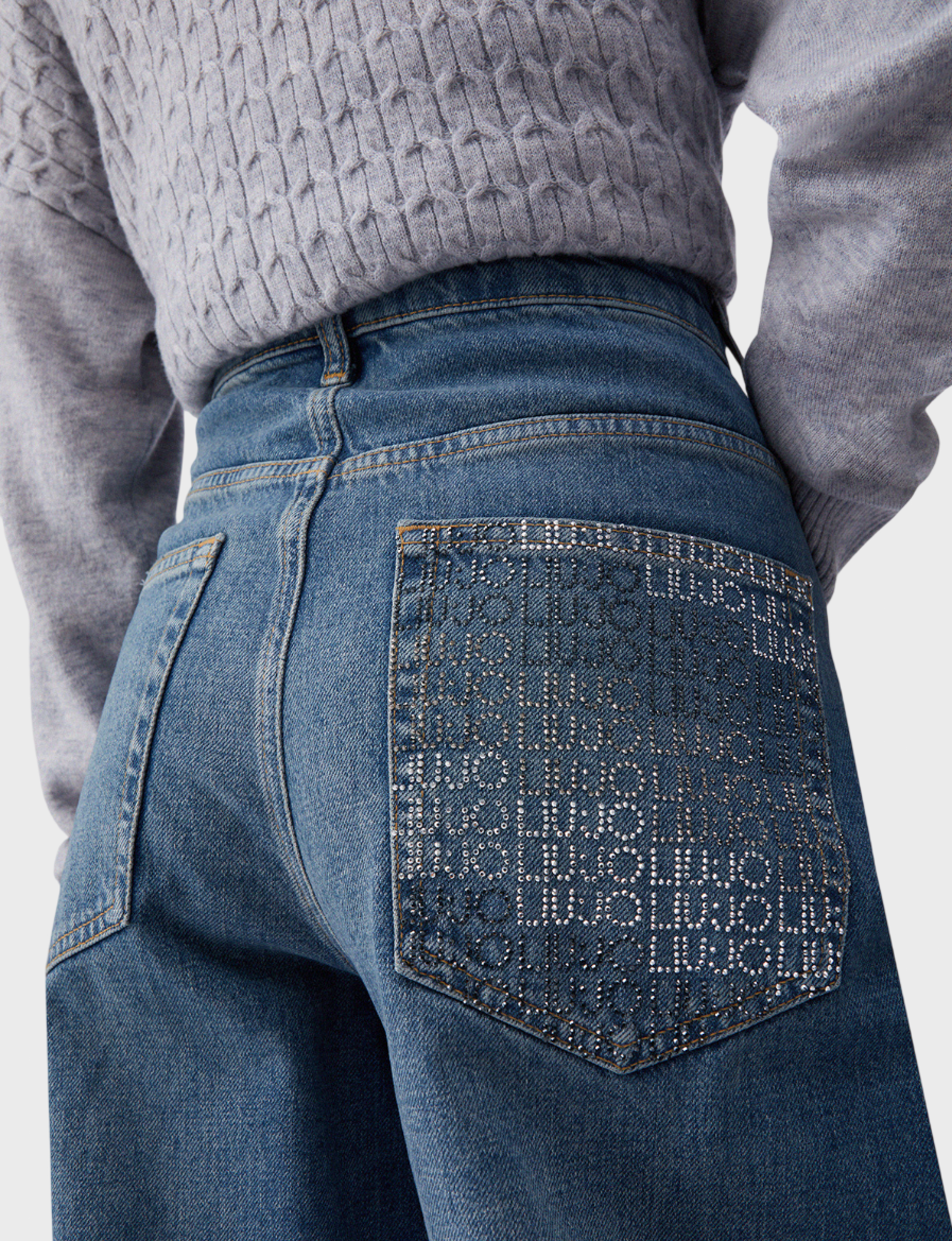- На заднем кармане: стразы и логотип