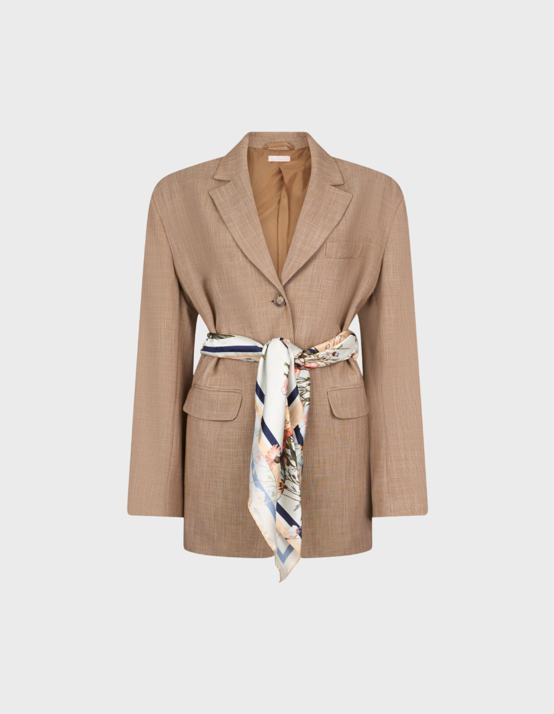 Бежевый жакет с платком от бренда Liu Jo – Комфорт благодаря сочетанию вискозы, полиэстера и эластана. Элегантность и утонченность образа всего одним элементом! Идеально подчеркивает фигуру и добавляет образу женственности.