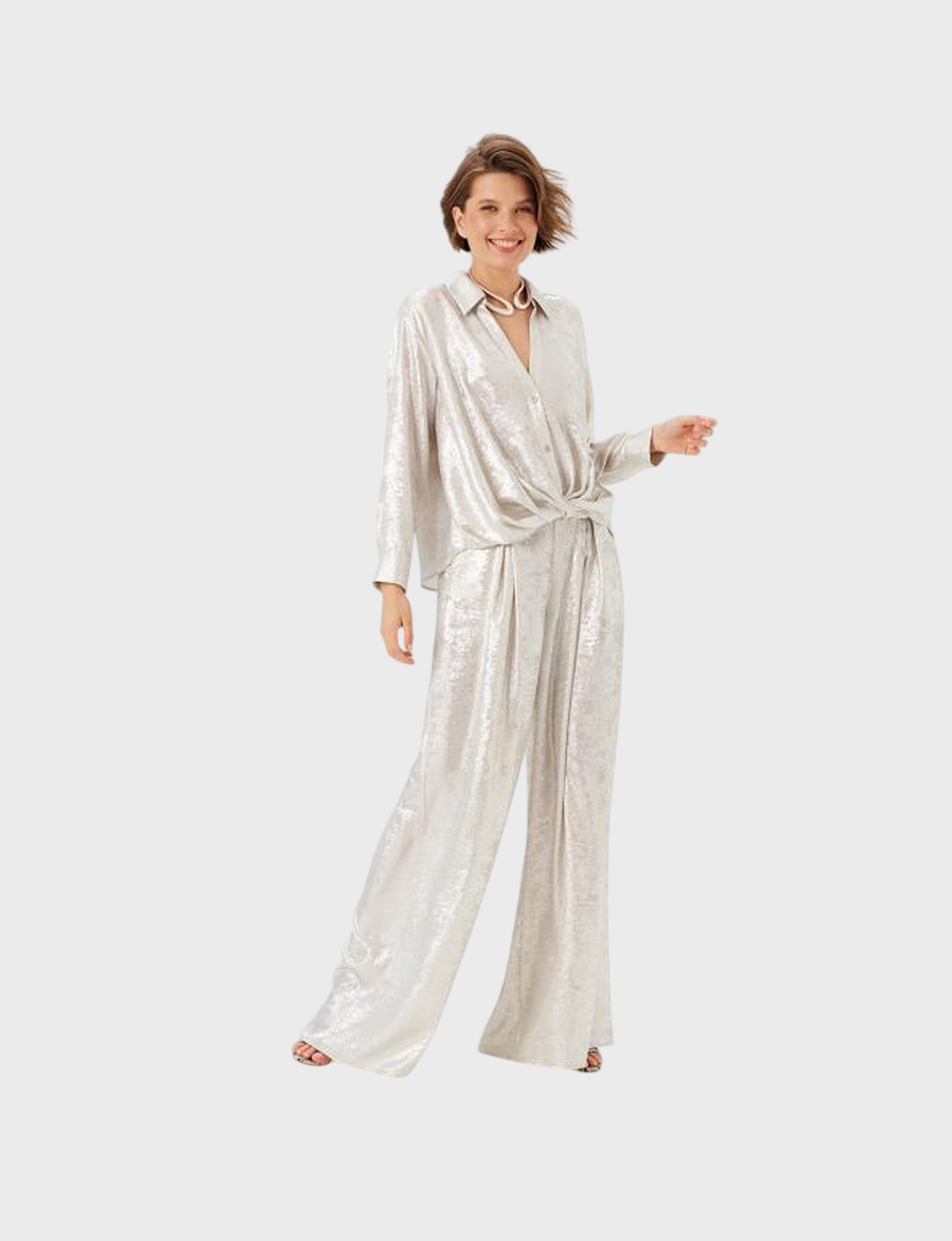 Женские брюки бренда NOCHE MIO из коллекции Jade цвета серебро – это идеальное сочетание стиля и комфорта. Подходит для повседневного ношения и официальных мероприятий. Материал: 100% полиэстер обеспечивает легкость ухода и долговечность.