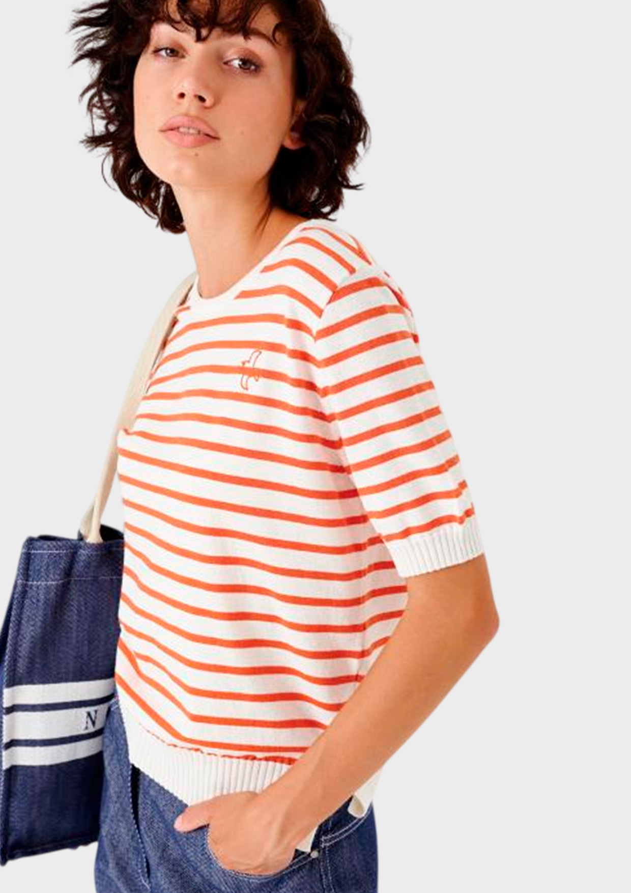 Женский джемпер бренда Noche Mio – элегантно сочетает белый и оранжевый цвета, создавая современный полосатый дизайн. В вашем гардеробе появится универсальная вещь, подчеркивающая индивидуальность и создающая уют в прохладное время года.