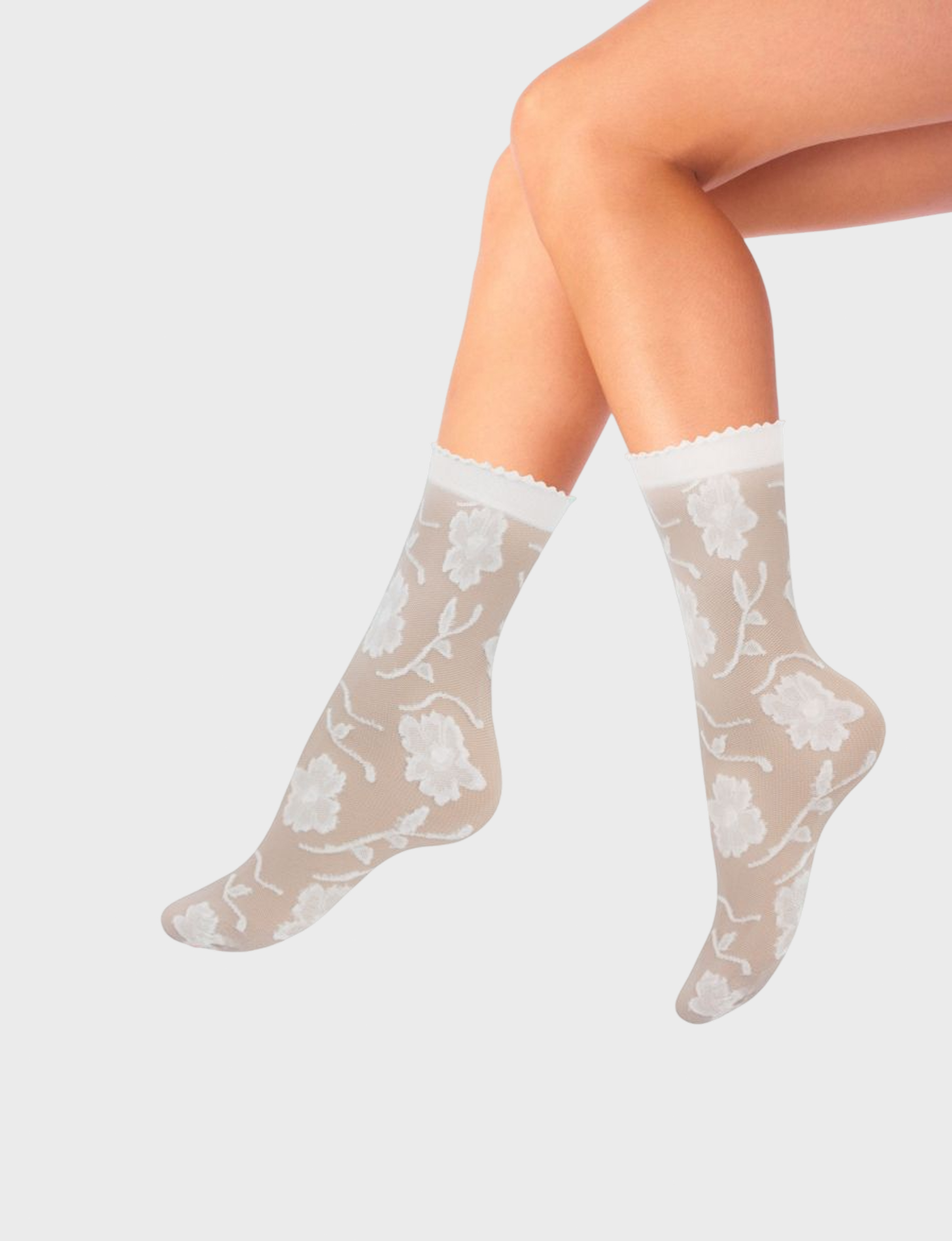Носки «Mademoiselle» молочного цвета – В составе 72% полиамида и 9% эластана обеспечивают идеальную посадку и долговечность, а 19% полипропилена подарят сухость и уют даже в самый жаркий день.