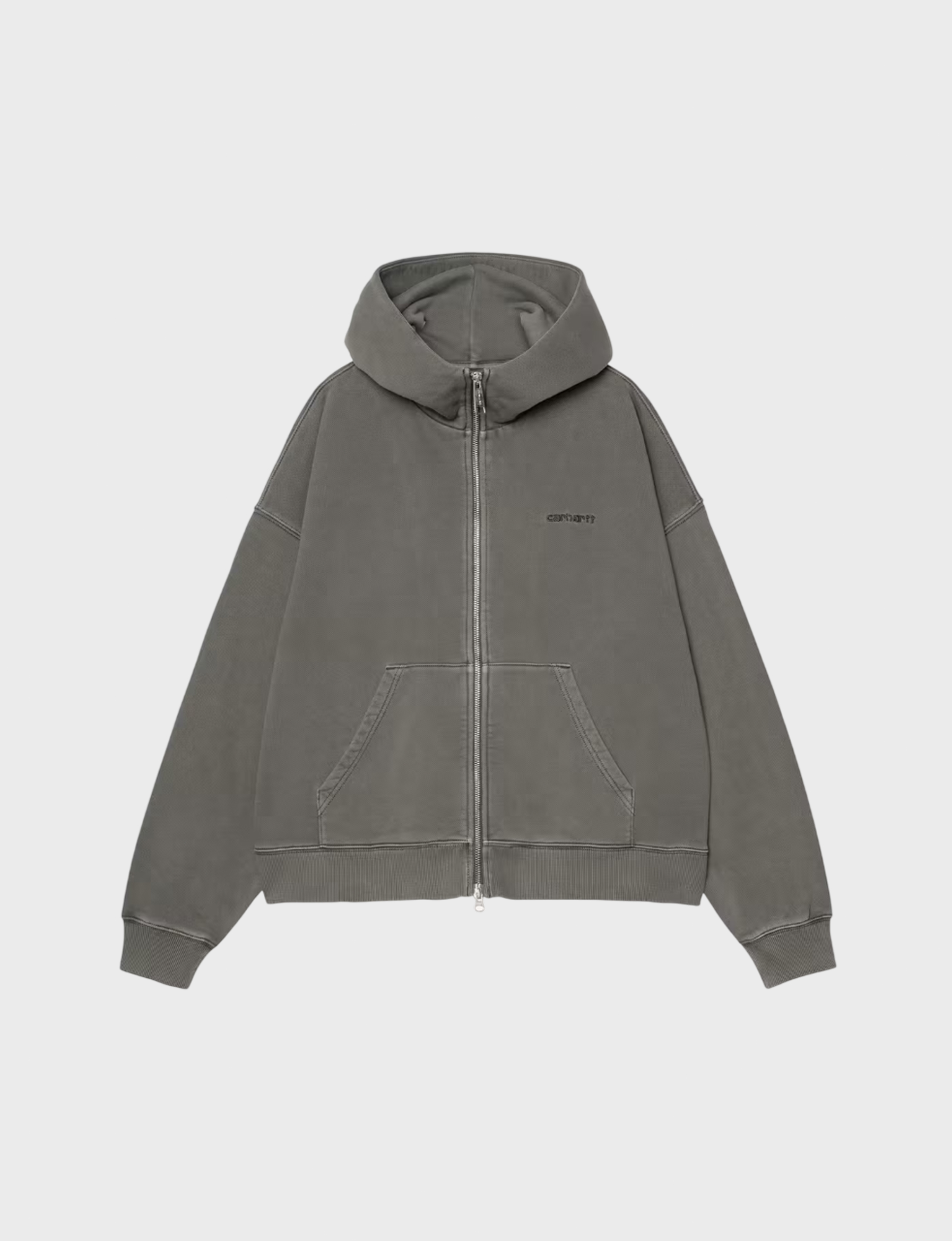 Женская толстовка Benton с капюшоном выполнена в свободном крое из плотного хлопкового трикотажа без ворса и имеет тактильную конструкцию с петлями. Изделие окрашено в массе для придания мягкости и создания сложной цветовой конфигурации. Спереди расположен вышитый логотип в тон.