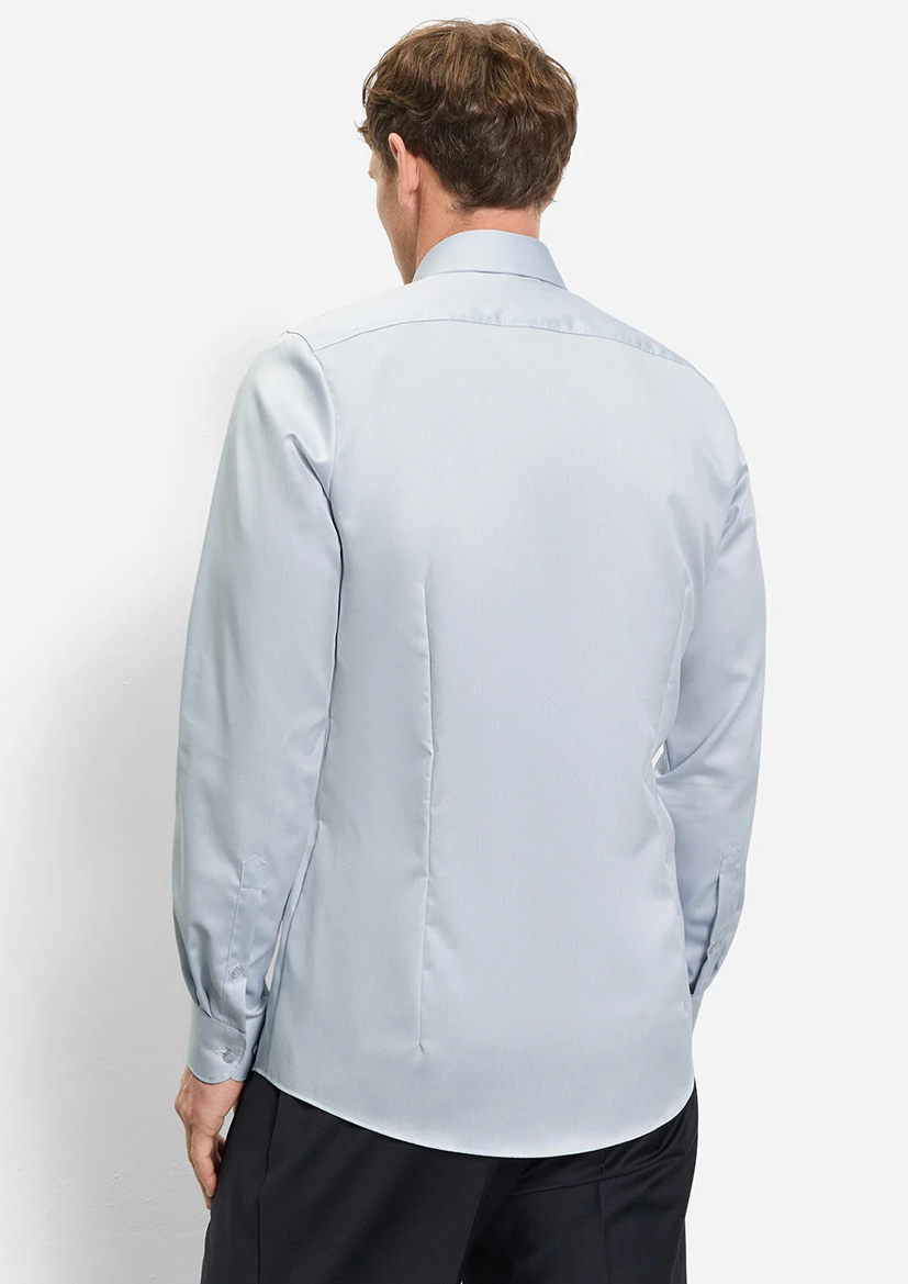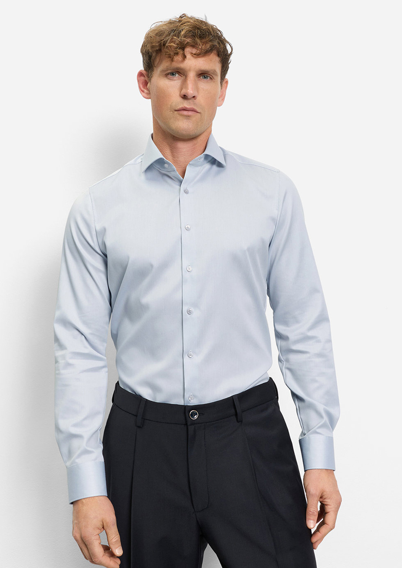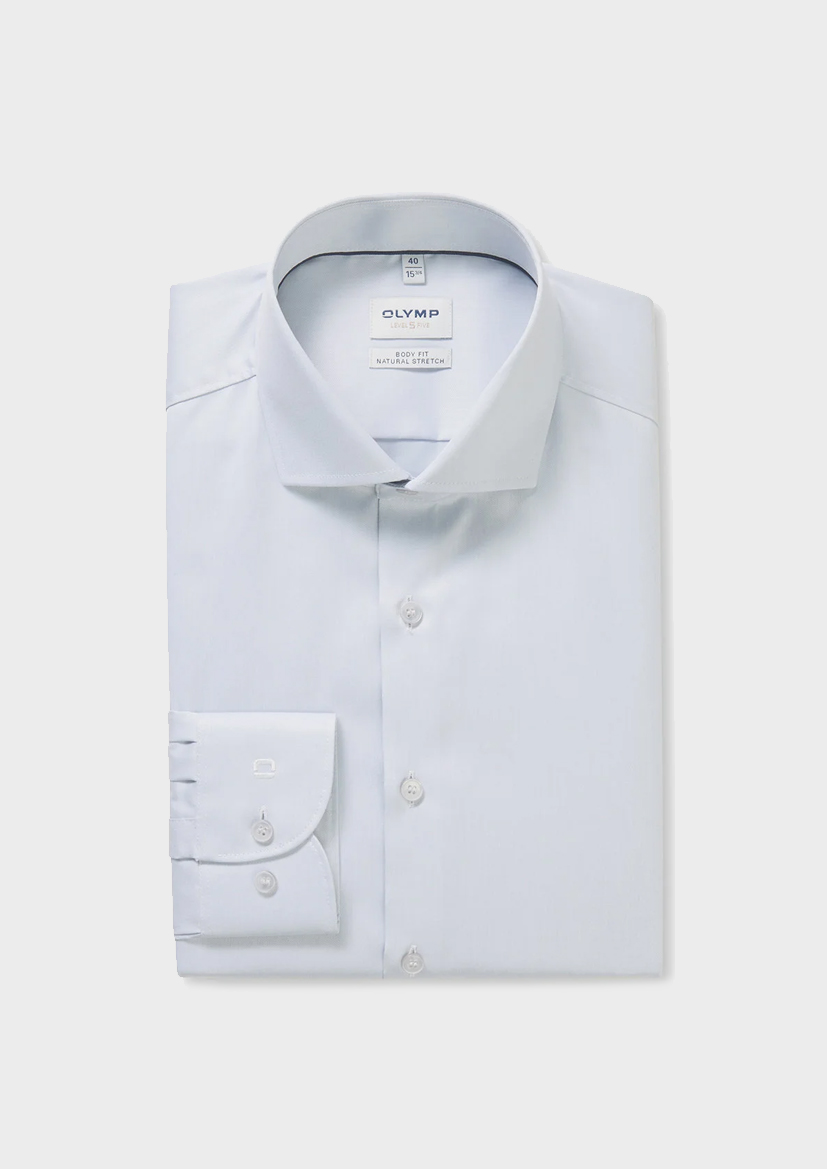 Эта рубашка OLYMP серебристо-серого цвета скроена по фигуре в приталенном стиле. Воротник Royal Kent обеспечивает четкую и элегантную линию. Классическая планка на пуговицах.
