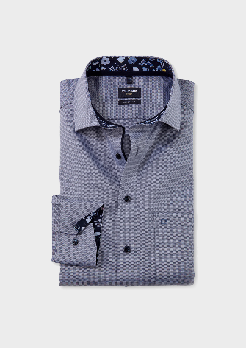 Рубашка OLYMP Luxor modern fit сохраняет отличную форму в течение всего дня. Эта деловая рубашка из тонкого однотонного текстурированного материала из 100% хлопка, устойчивая к образованию складок и не нуждается в глажке. Модный воротник Global Kent с контрастной отделкой с внутренней стороны дополняет образ.