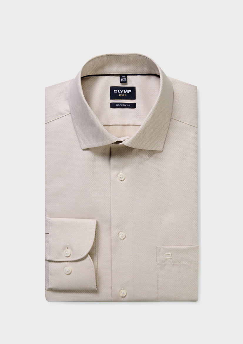 Мужская сорочка OLYMP Luxor из 100% хлопка — идеальный выбор для комфорта. Хлопковая ткань обеспечивает отличную вентиляцию, позволяя коже дышать, а бежевый цвет легко сочетается с деловыми костюмами и повседневными образами.