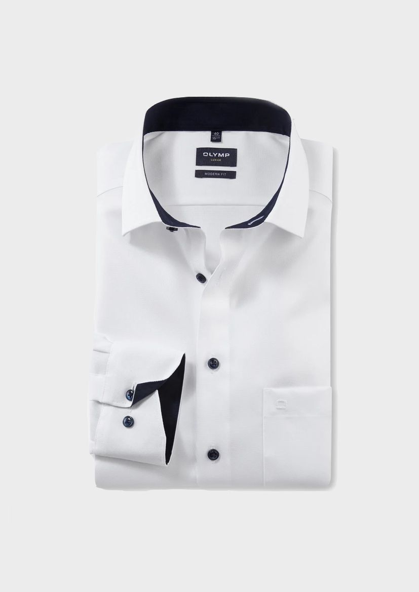OLYMP Luxor modern fit остается безупречной в течение всего дня даже без глажки. Деловая рубашка из 100% хлопка, которая не мнется, всегда выглядит хорошо. Ткань белого цвета пропускает воздух, приятна для кожи и остается безупречной, каким бы напряженным и долгим ни был ваш рабочий день.
