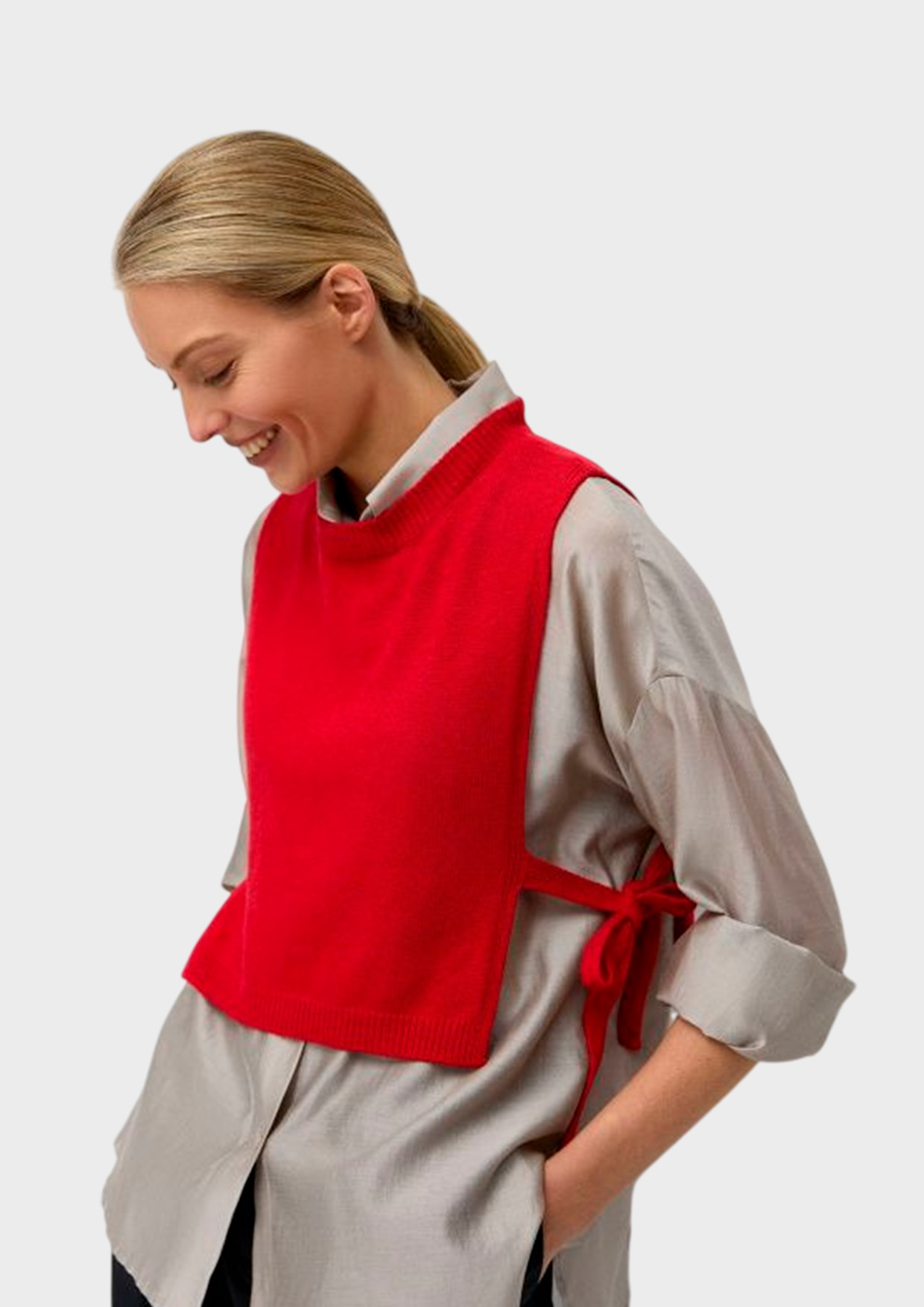 Манишка связана из микса кашемира, шерсти мериноса и вискозы; нежной и комфортной к коже пряжи, сделанной в Италии.