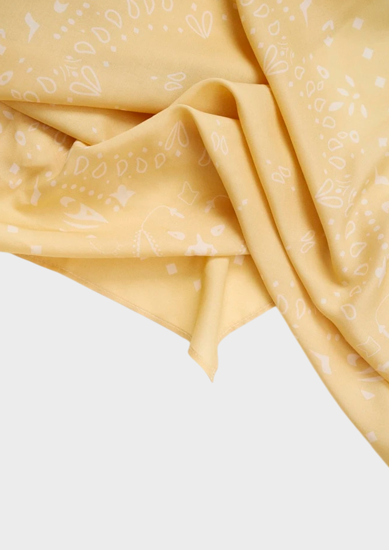 Лёгкий платок из мягкого модала с деликатным узором пейсли. Нежный жёлтый оттенок добавляет образу свежесть, оставаясь сдержанным и универсальным. Тонкая, приятная на ощупь ткань комфортна в носке и легко драпируется.