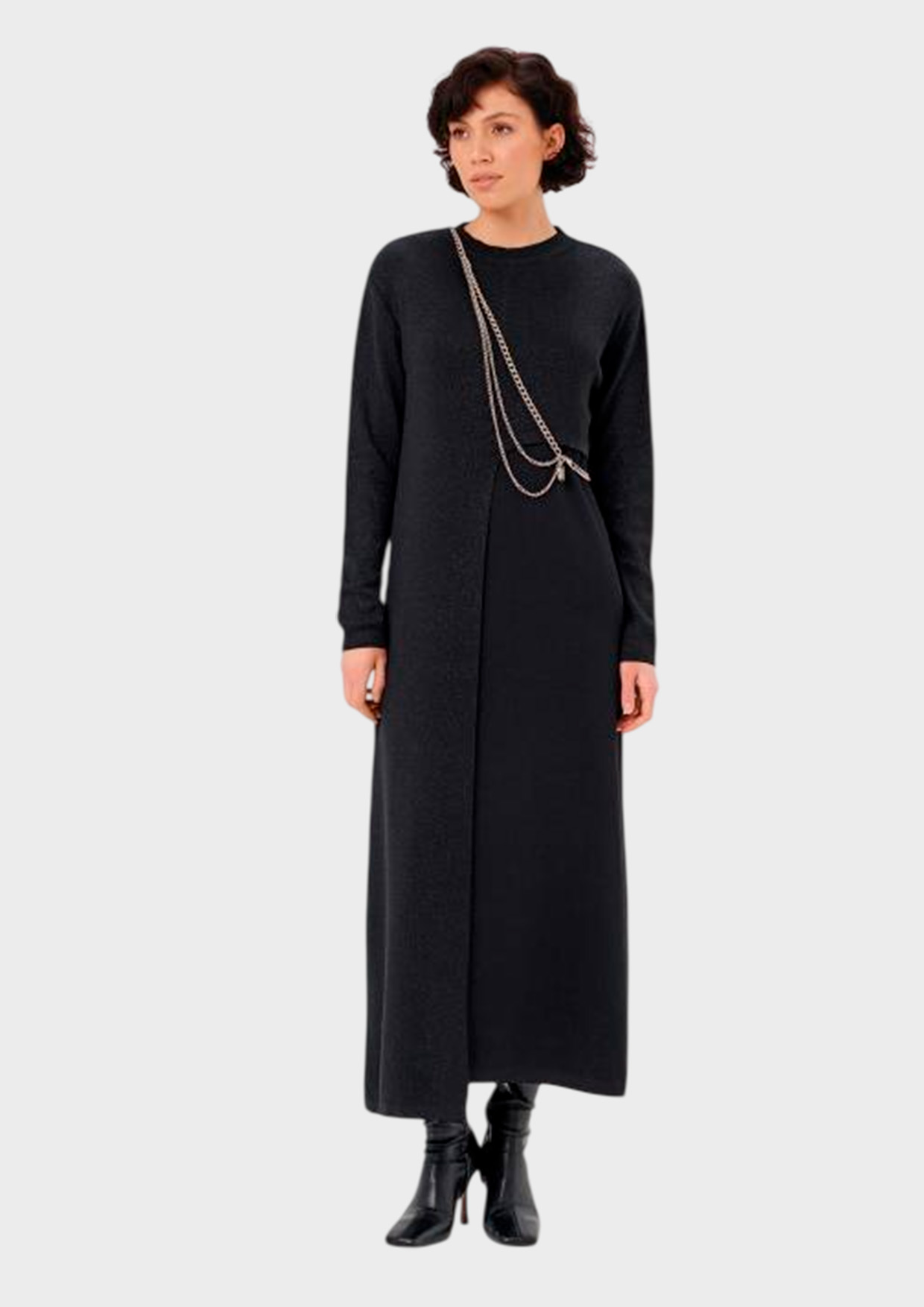 Черный цвет универсален и подходит ко всем случаям гардероба. Плавные линии кроя выгодно акцентируют достоинства фигуры, создавая стильный образ всего одним предметом одежды.