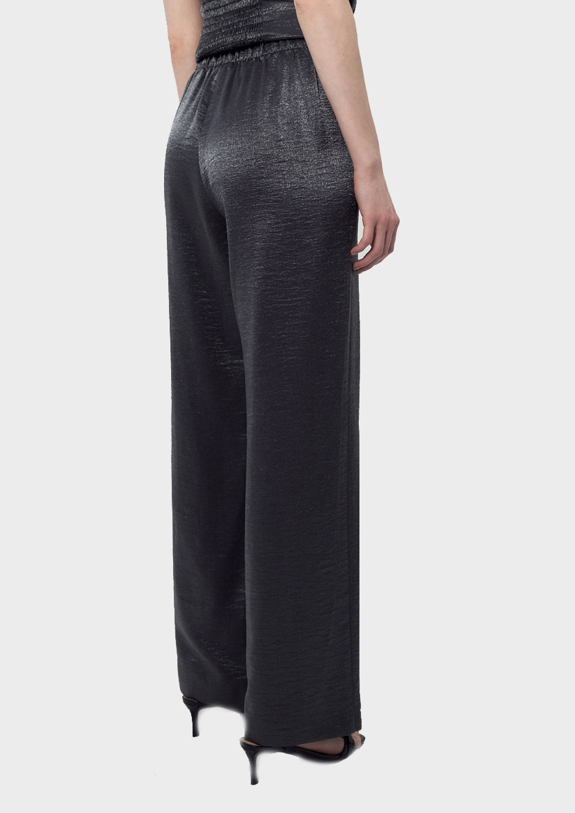 Широкие брюки полной длины на средней посадке. Брюки на резинке. Карманы в боковых швах.