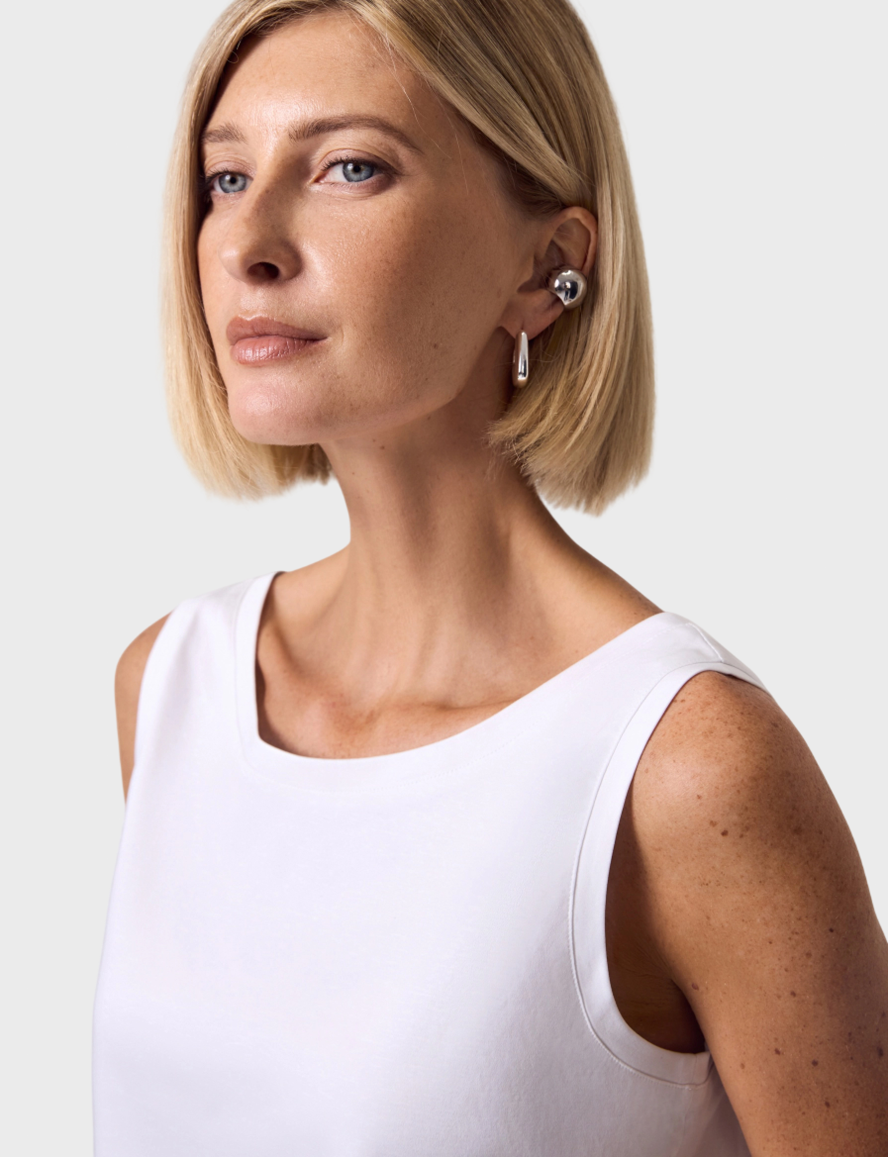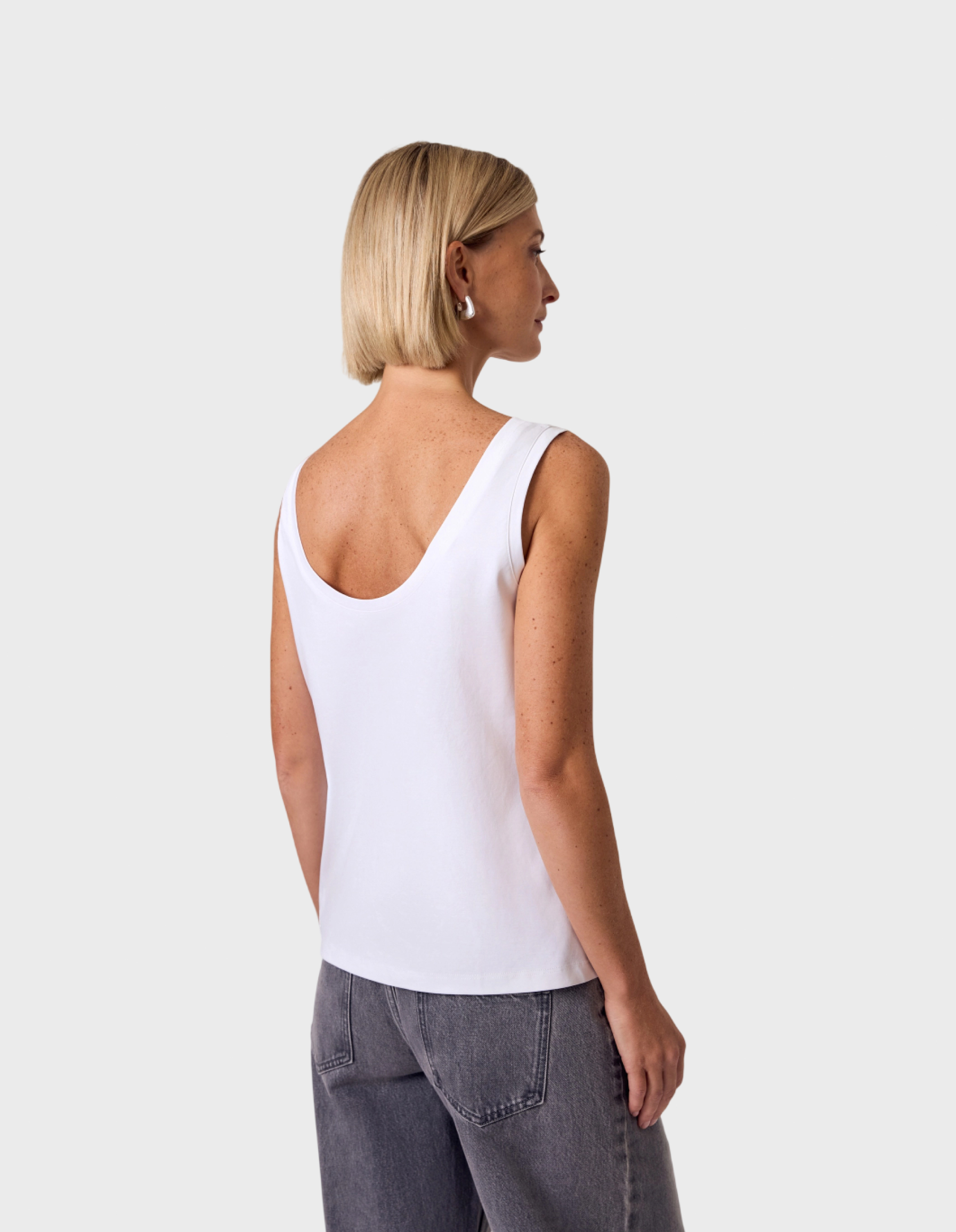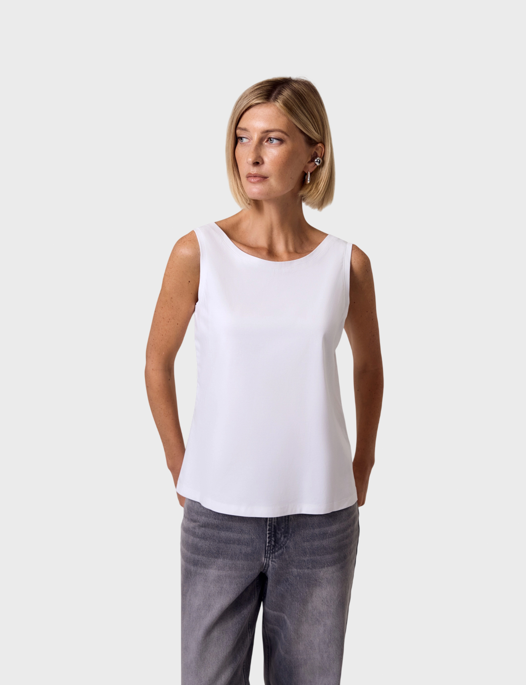 Идеальная белая майка - из тех вещей, без которых не обходится ни один базовый гардероб. Оптимальная длина позволяет носить майку как заправленной, так и на выпуск.