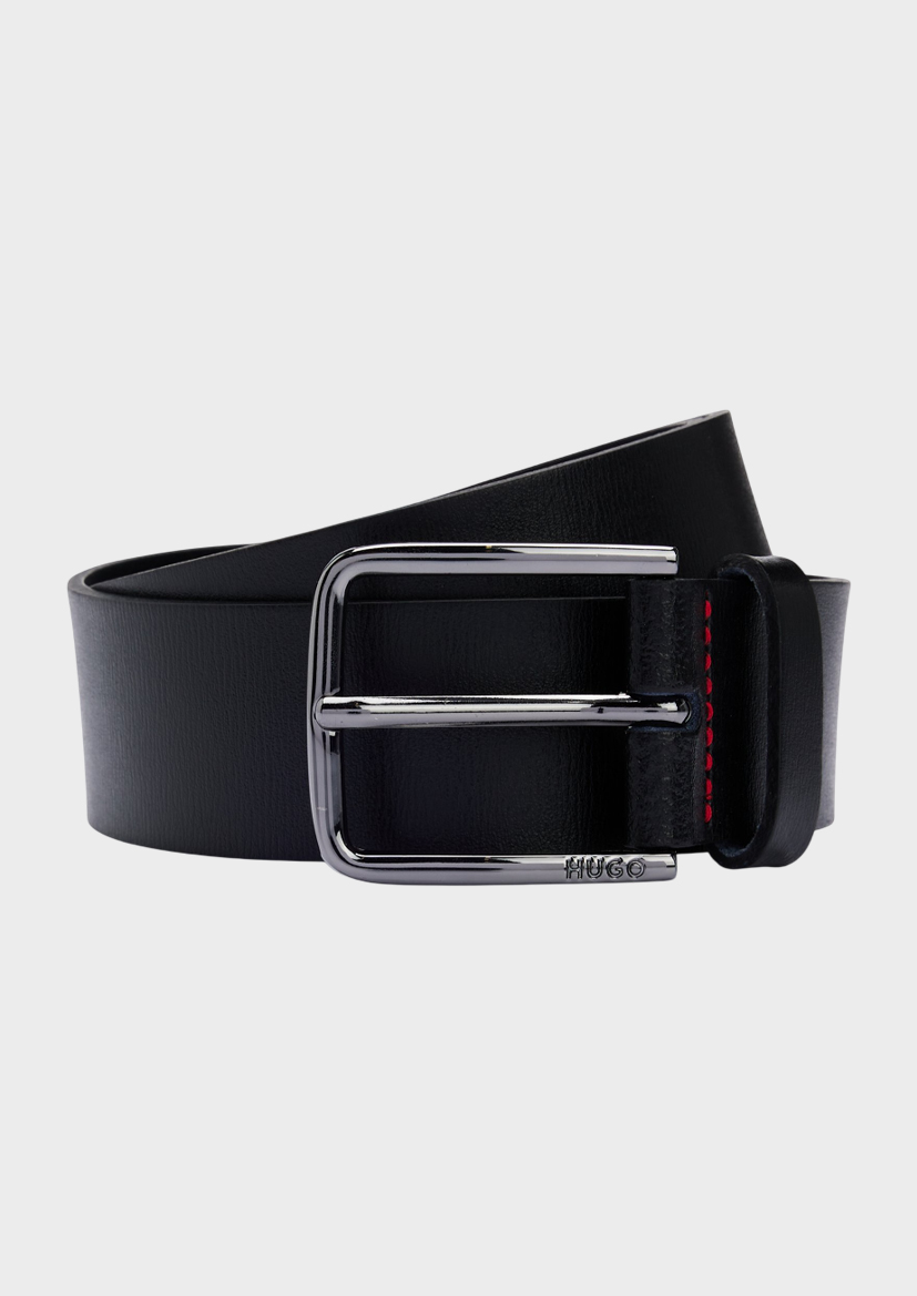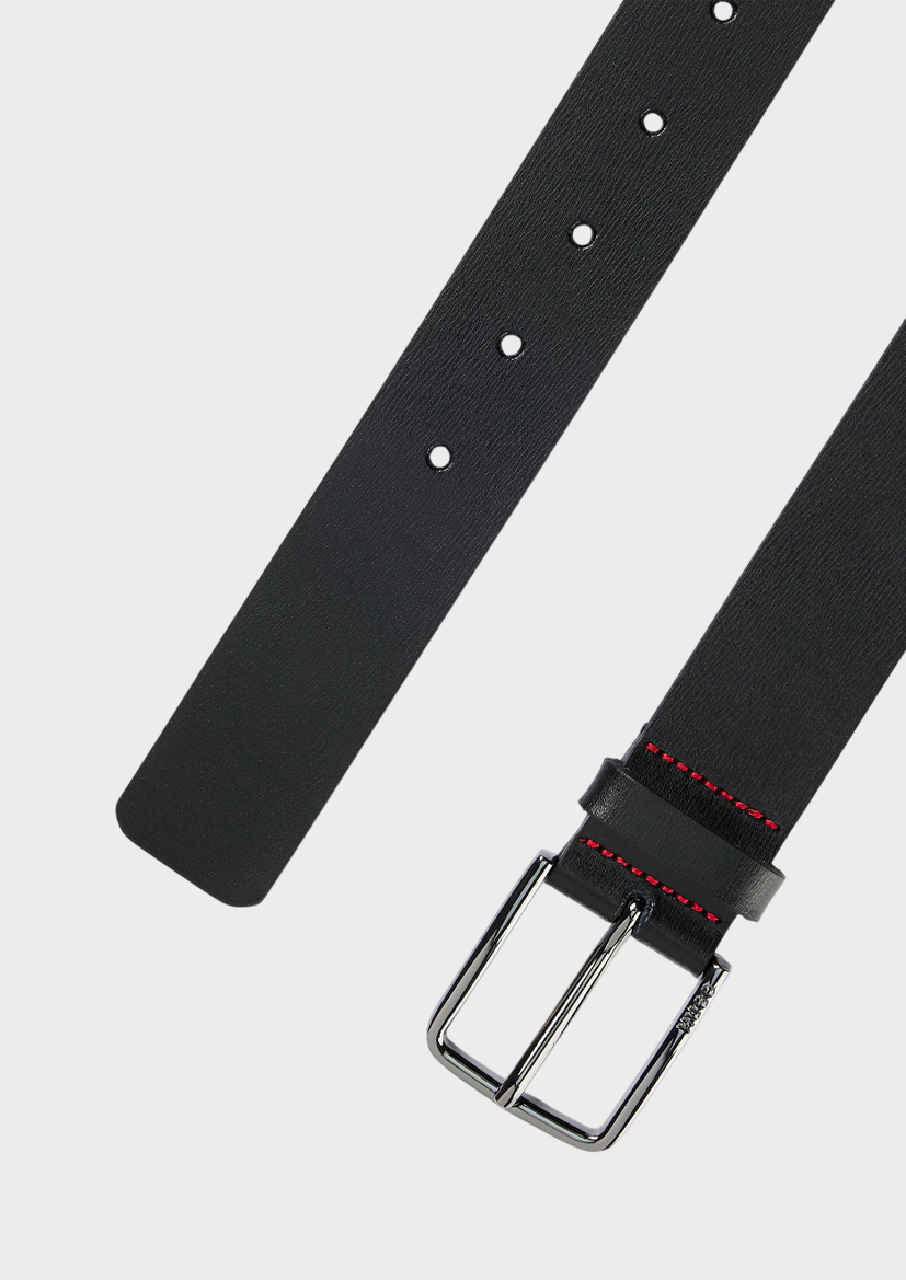 Ремень HUGO Menswear шириной 3,5 см, выполненный из роскошной итальянской кожи с тонкой текстурой. Оснащён полированной пряжкой с выгравированным логотипом. Красные прострочки.