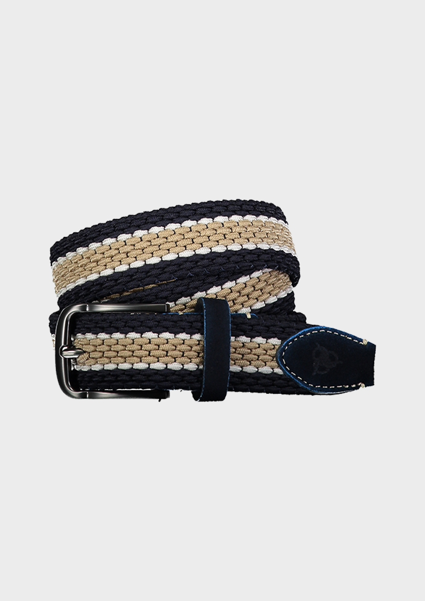 Мужской ремень ROY ROBSON – аксессуар из полиэстера и эластана в классическом синем и бежевом оттенках. Подходит для ежедневного ношения благодаря комфорту и универсальности.