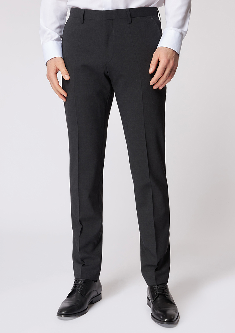 Тёмно-серый оттенок универсален и легко сочетается с различными верхами из вашего гардероба. Композиция материалов (54% полиэстер, 44% шерсть, 2% эластана) обеспечивает комфорт при носке, сохранение тепла и практичность ухода.