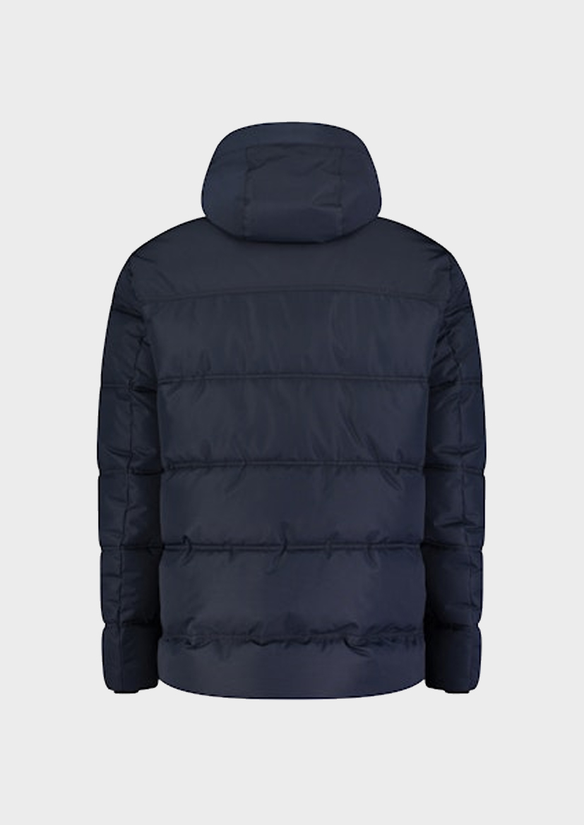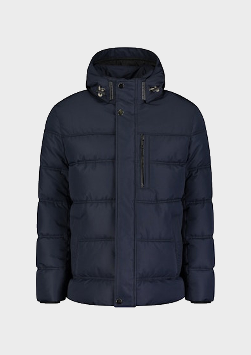 Утепленная куртка темно-синего цвета отлично согреет в любую непогоду. Высочайшее качество исполнения от немецкого бренда.