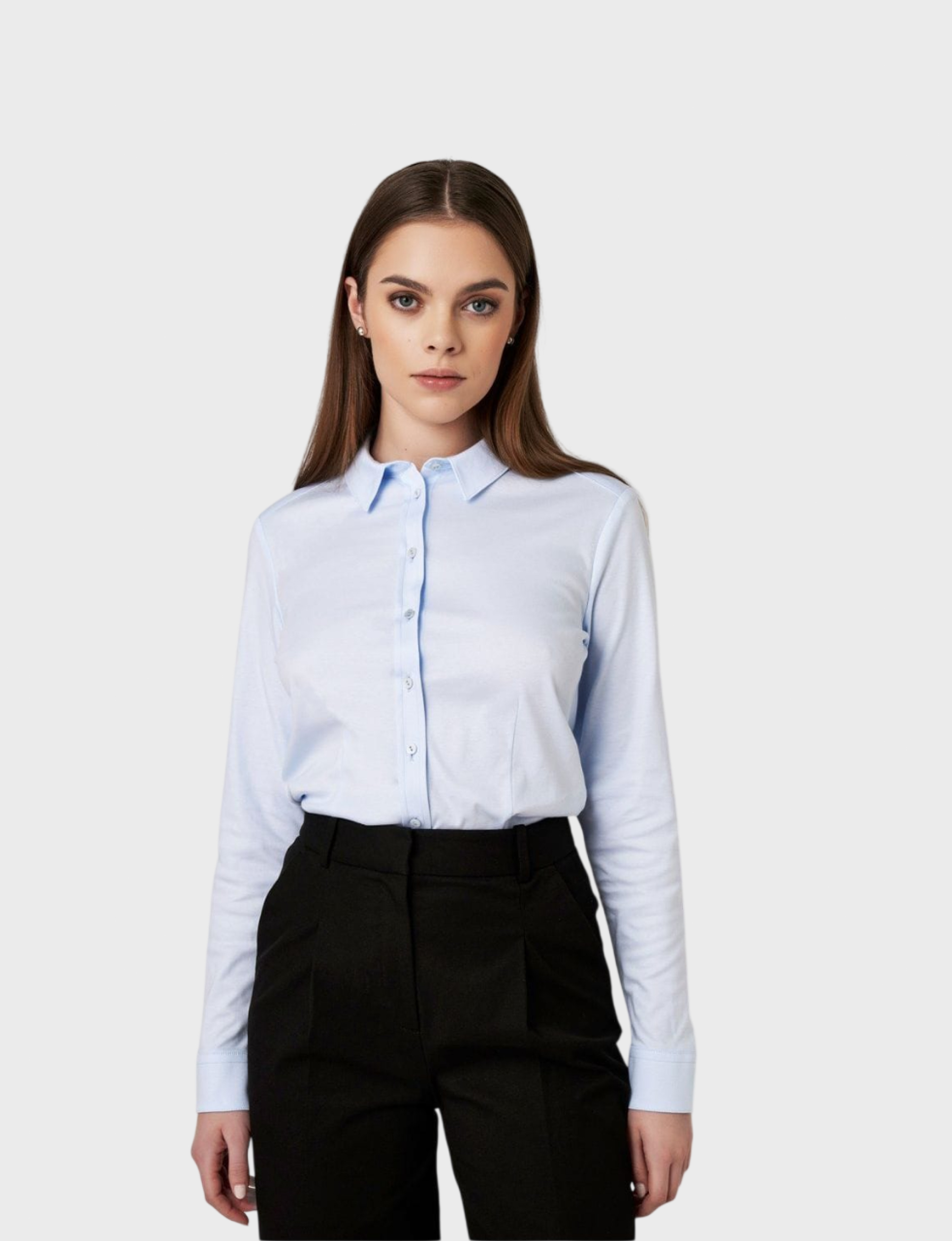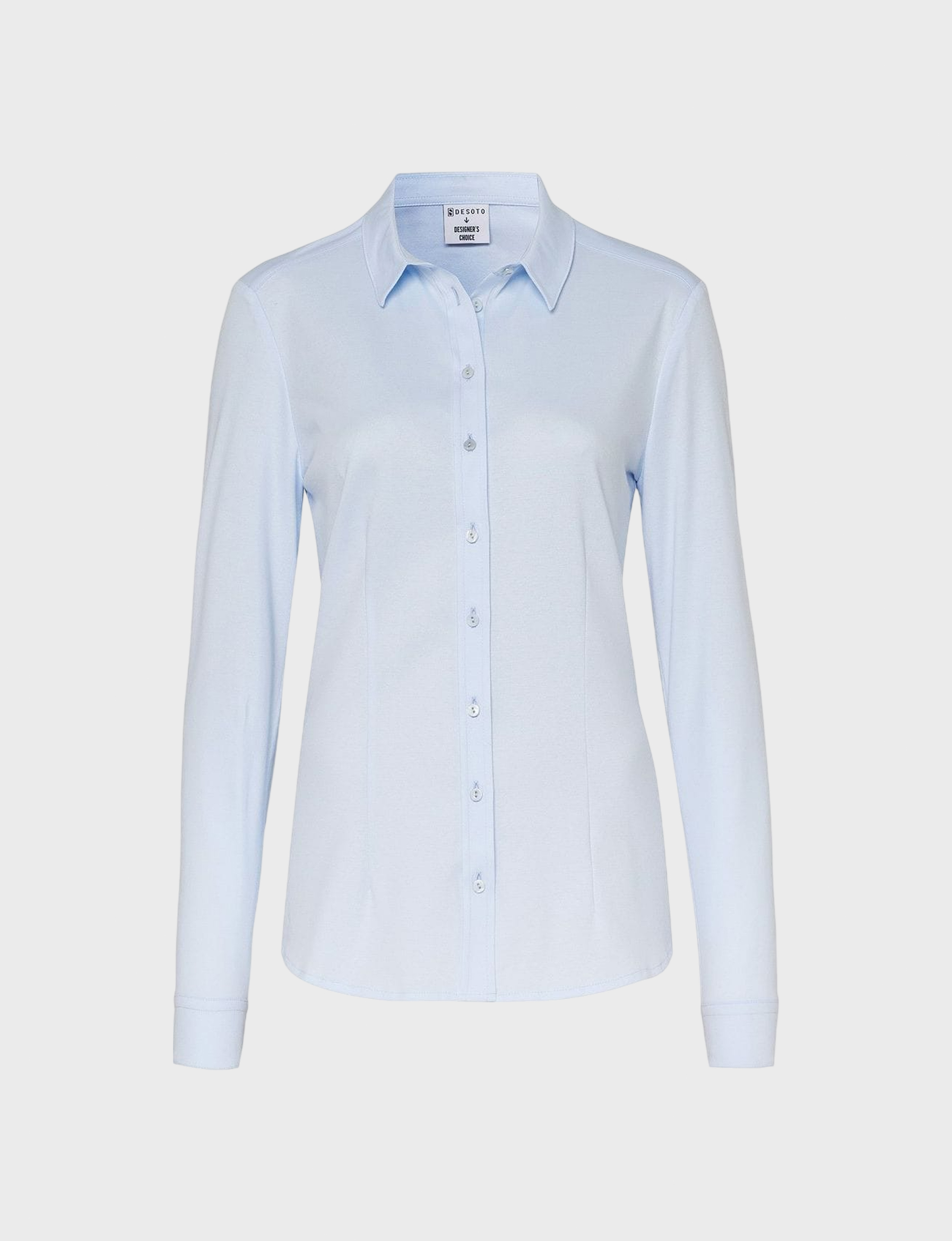 Женственная блуза-рубашка от бренда DESOTO — идеальный выбор для вашего гардероба! Прекрасно садится по фигуре благодаря элегантному крою, выполнена из приятного к телу 100%-го хлопка нежного голубого оттенка.