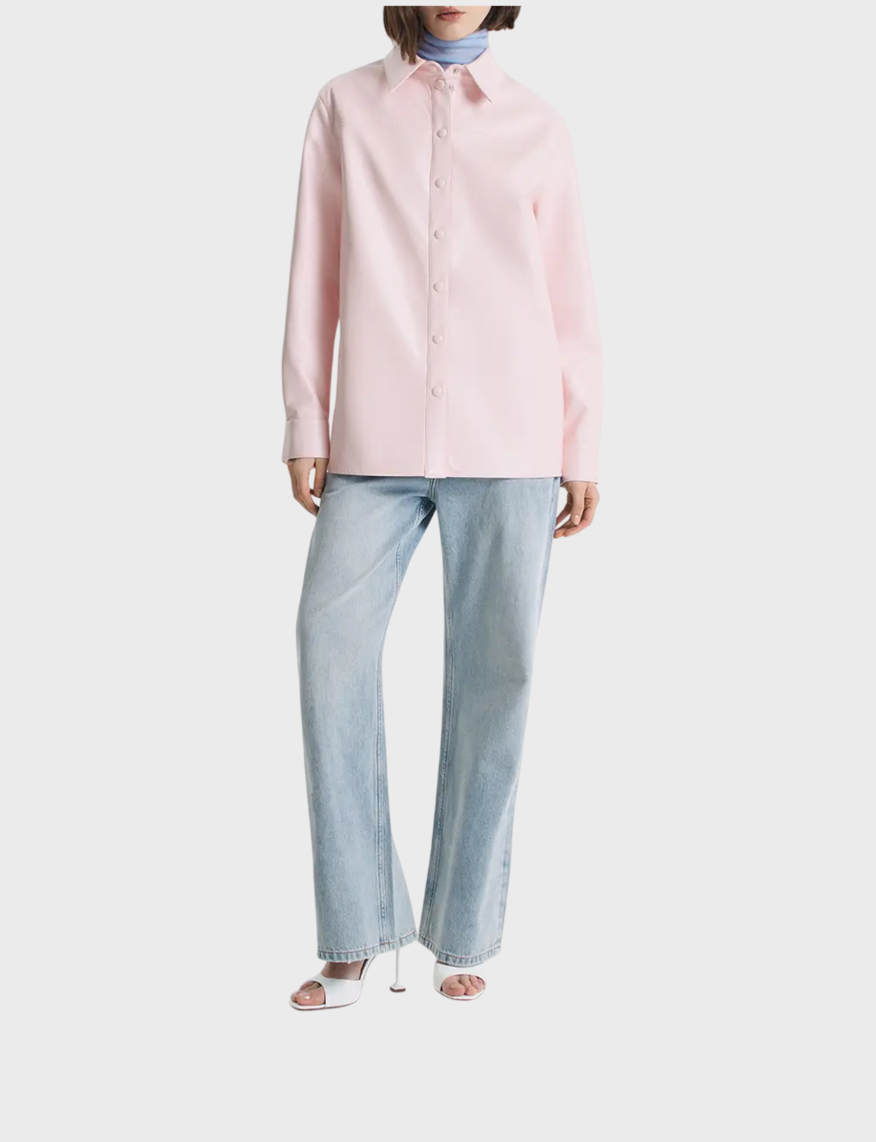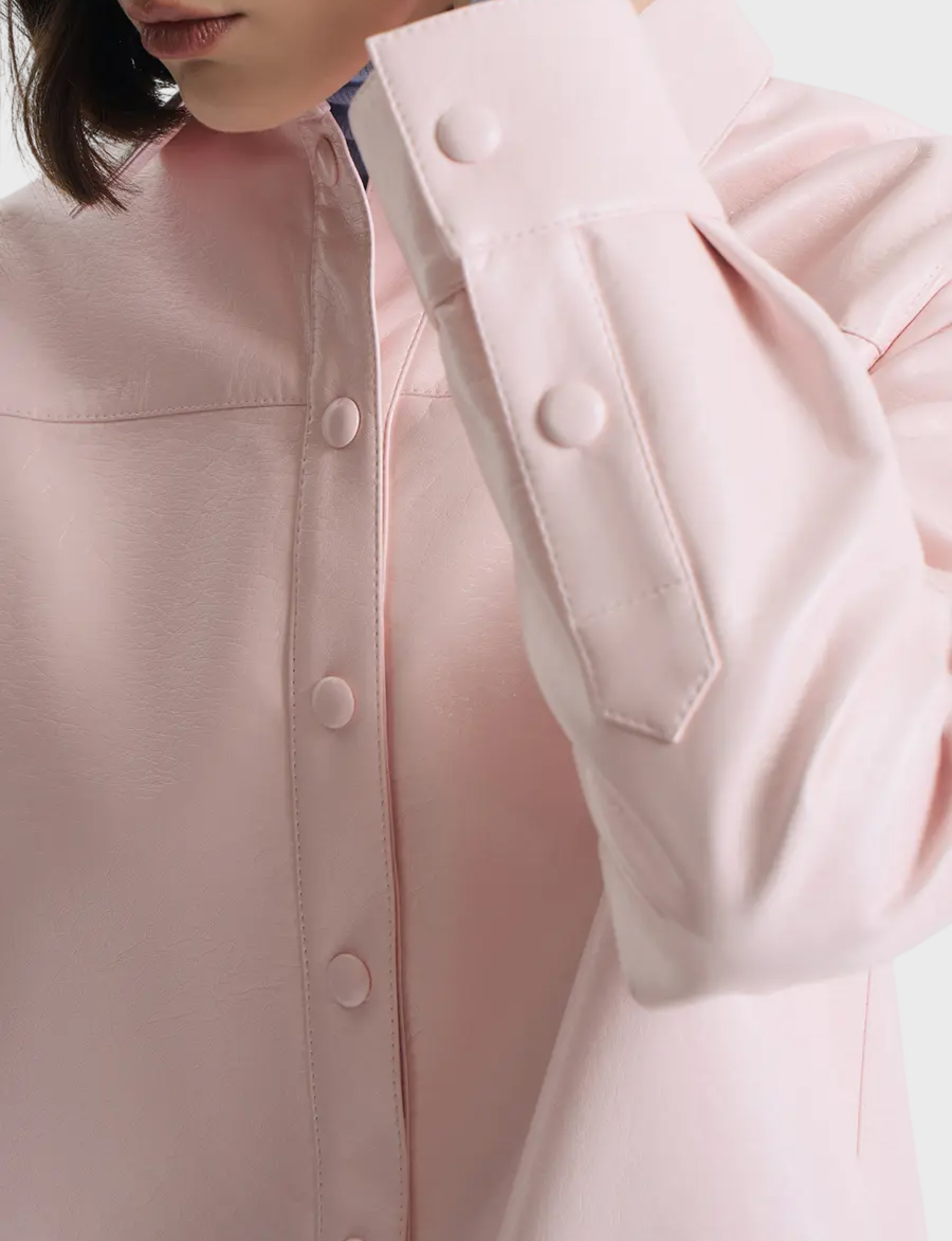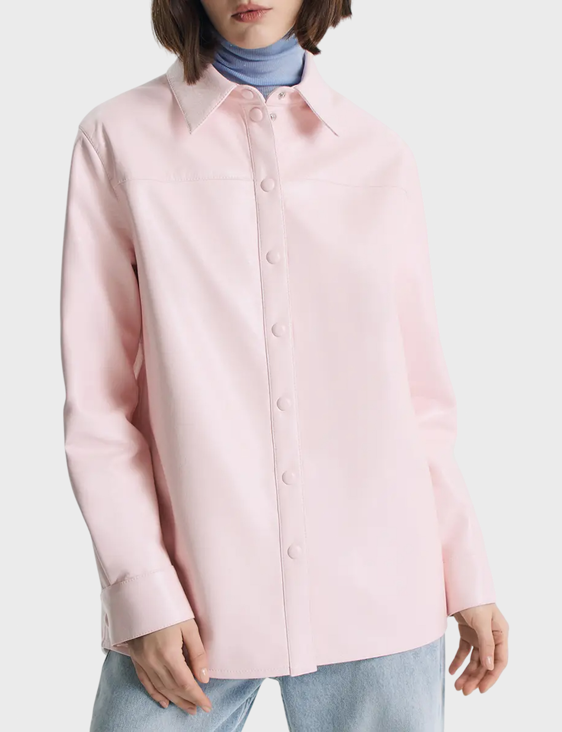 Розовая рубашка из экокожи FASHION REBELS – Идеальна для модниц, ценящих комфорт и экологичность: сочетает мягкость хлопка (45%) и практичность полиуретана (55%). Подходит для повседневных образов и особых случаев – легко сочетается с джинсами, юбками и брюками.