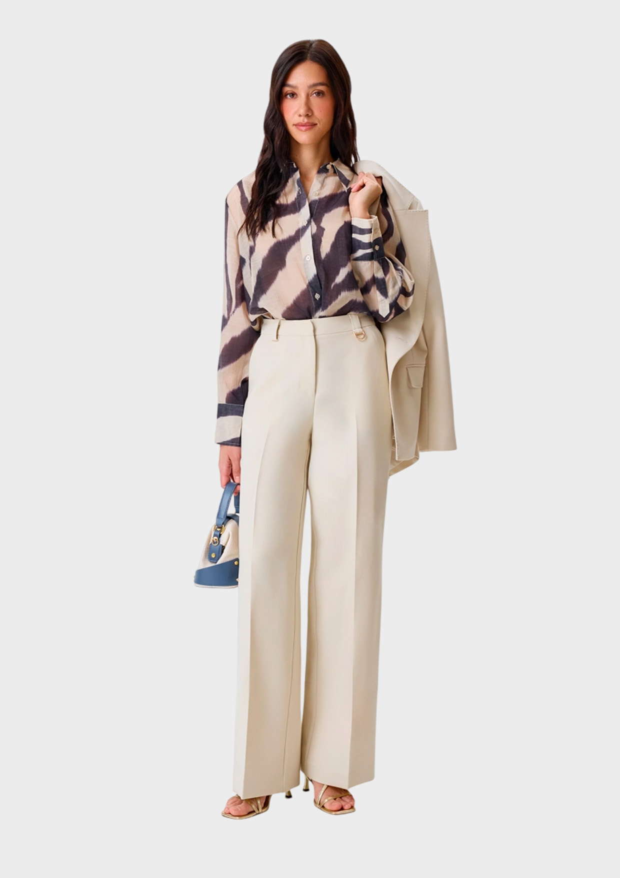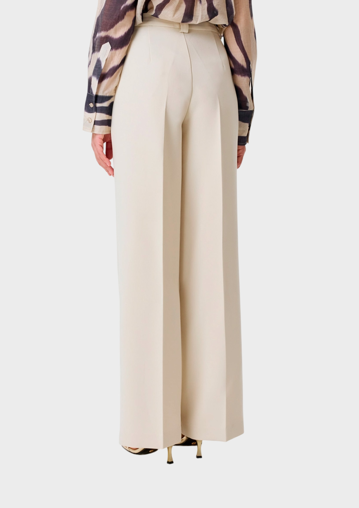 Широкие брюки с мягкими стрелками. Свободный силуэт. Боковые карманы в швах. Застежка на молнию и пуговицу. Металлический декор на шлевке. В составе вискоза.