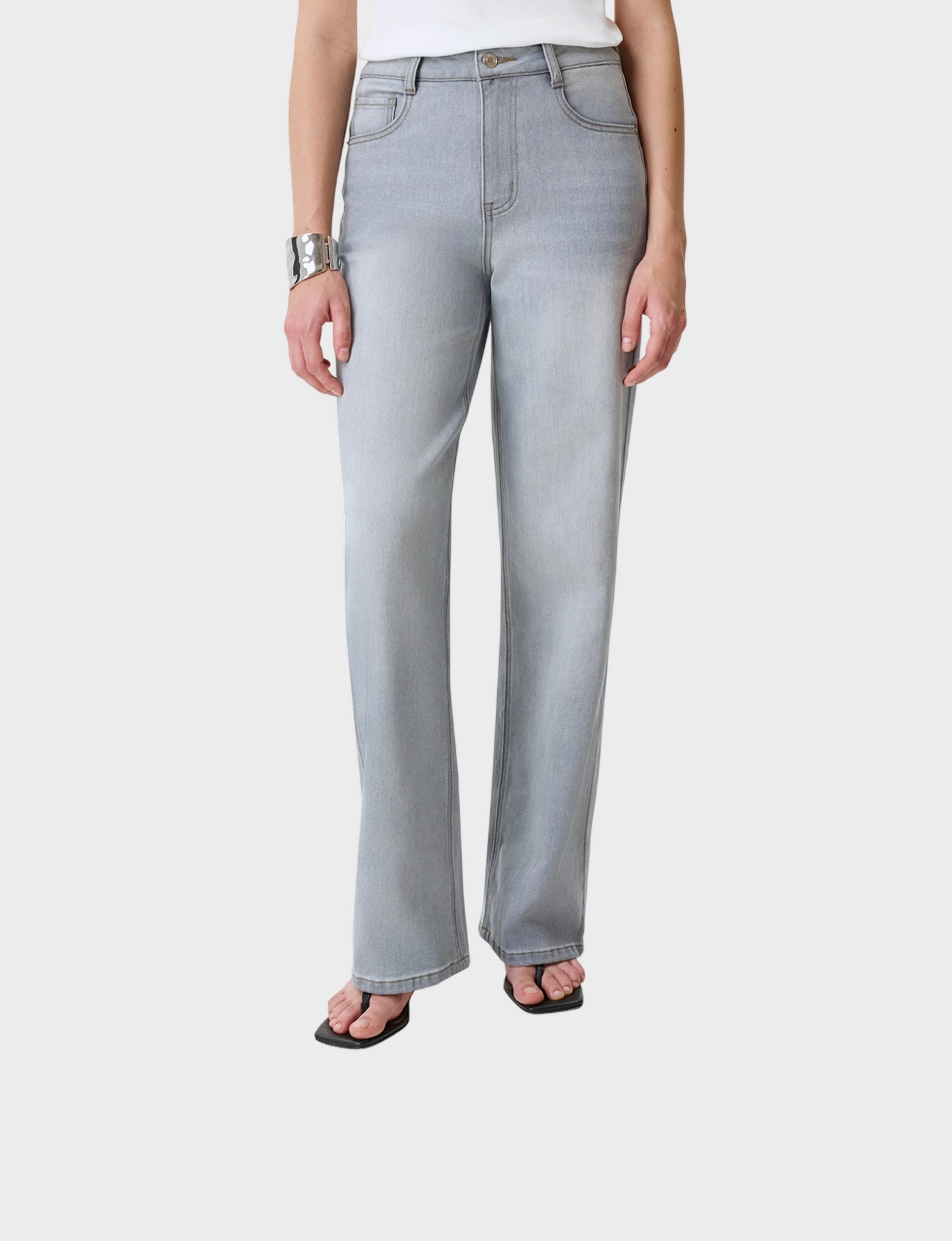 Джинсы прямого силуэта. Застежка на молнию и металлическую пуговицу. Пять карманов. Дополнены деликатной варкой. В составе спандекс.