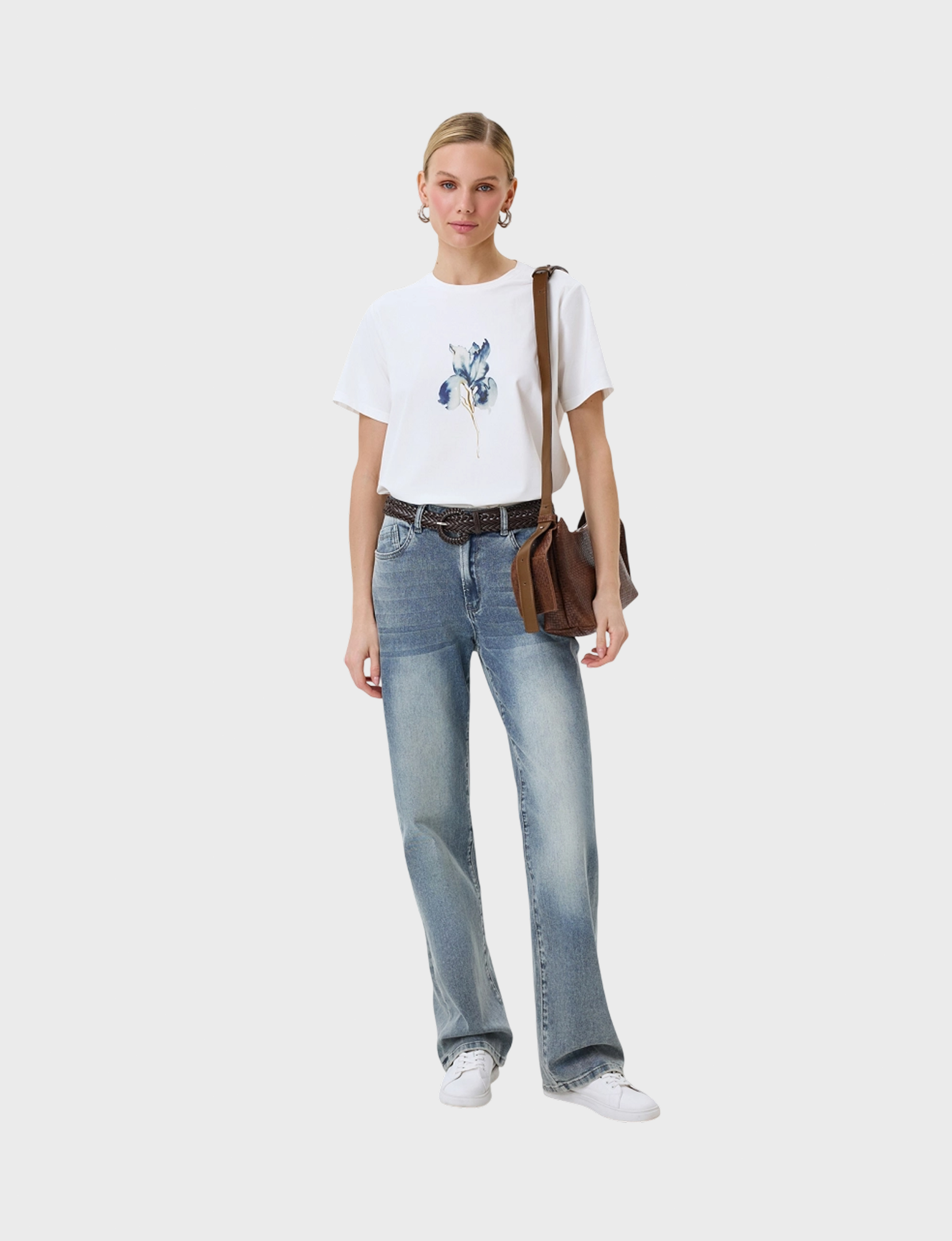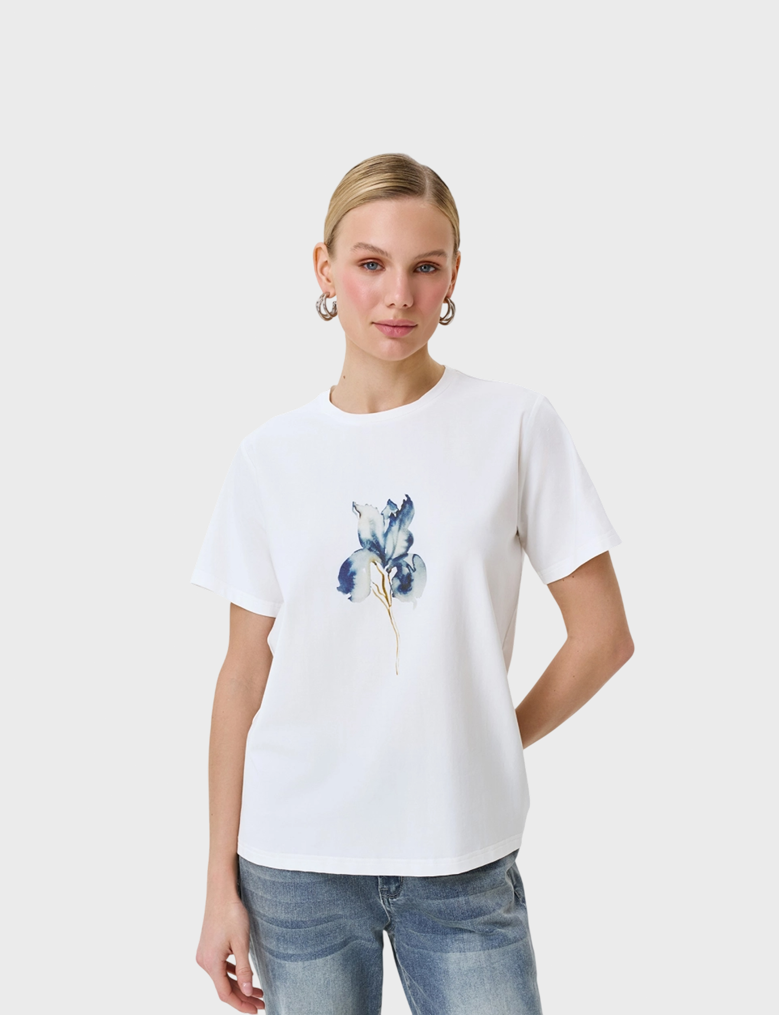 Футболка с флоральным принтом. Прямой силуэт. Круглый вырез. Короткие втачные рукава. В составе хлопок.