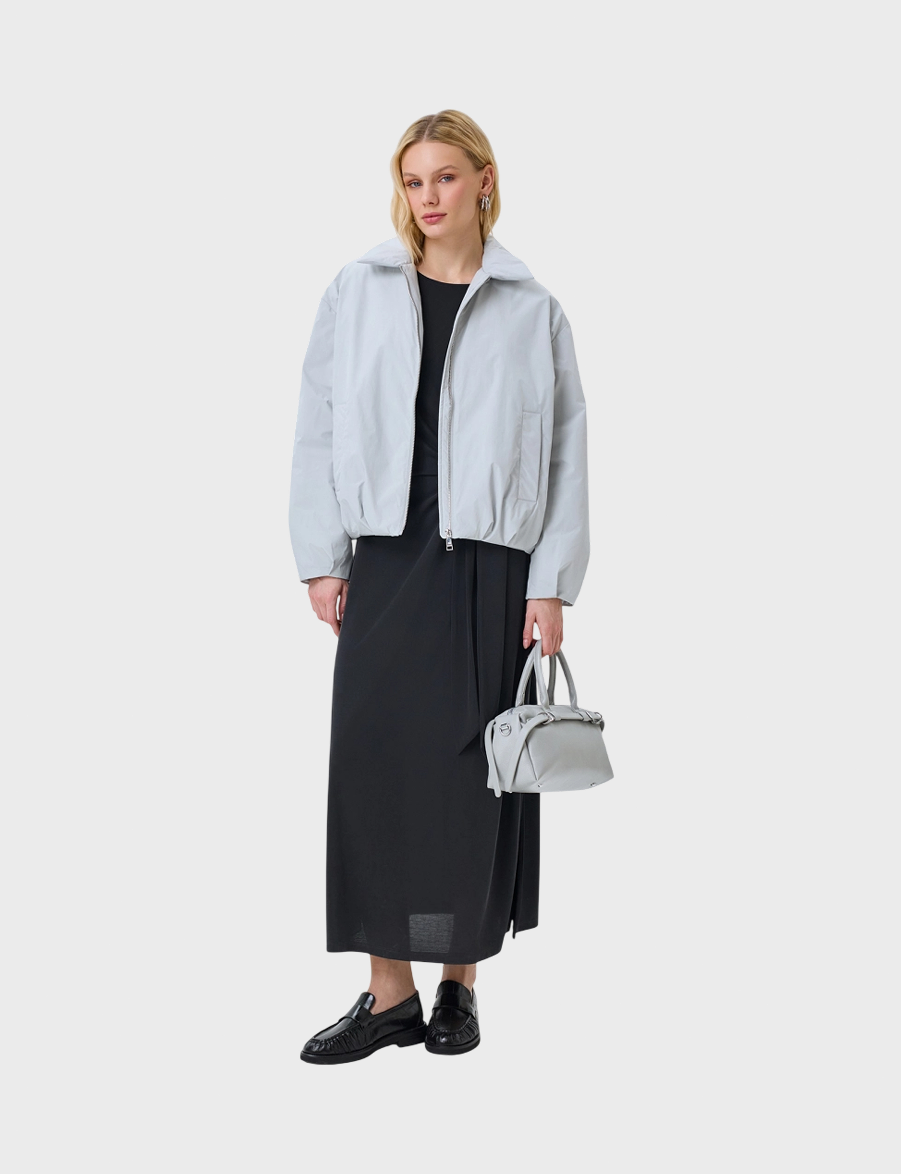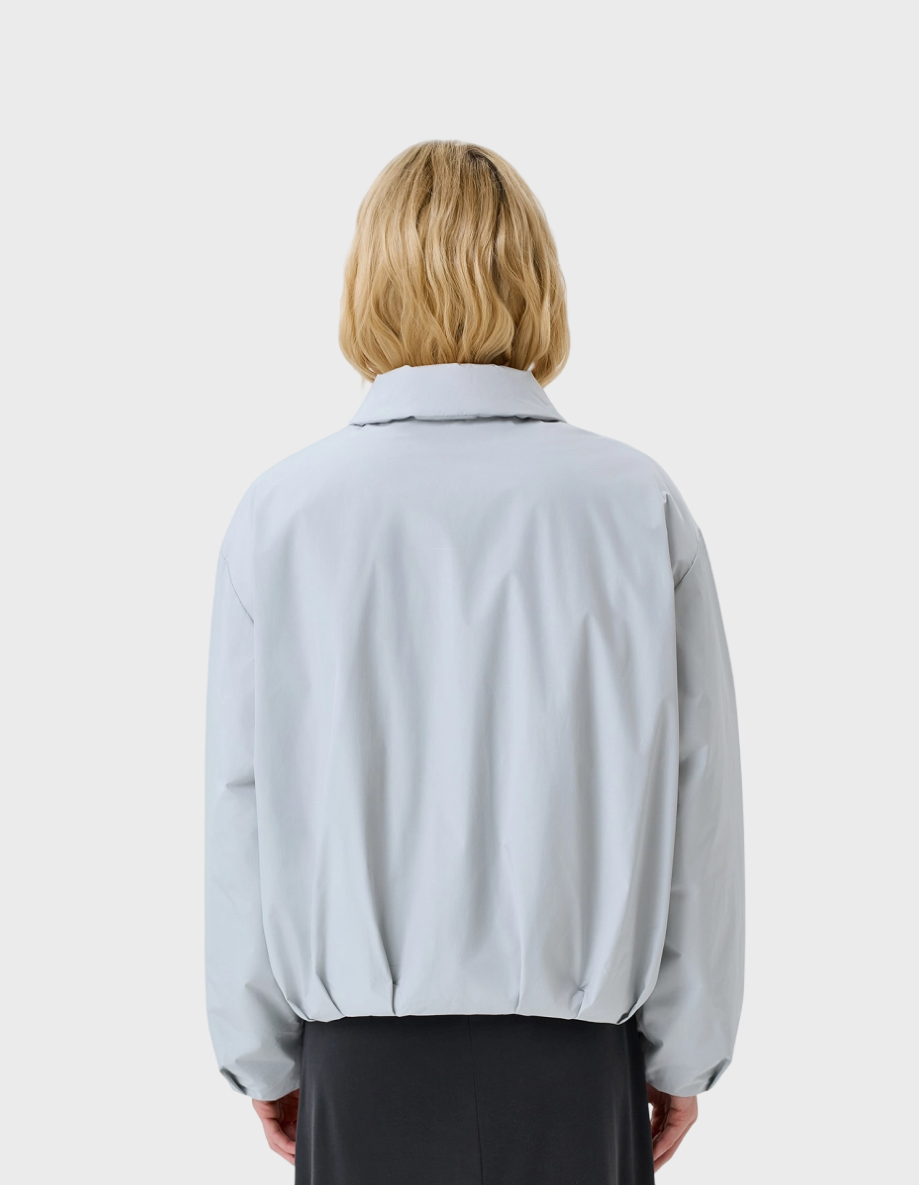 Укороченный утепленный бомбер. Свободный силуэт. Отложной воротник. Застежкана молнию. Спущенная линия плеч. Длинные рукава дополнены манжетами. Боковые карманы с листочками. Резинка по низу изделия. Искусственный утеплитель.