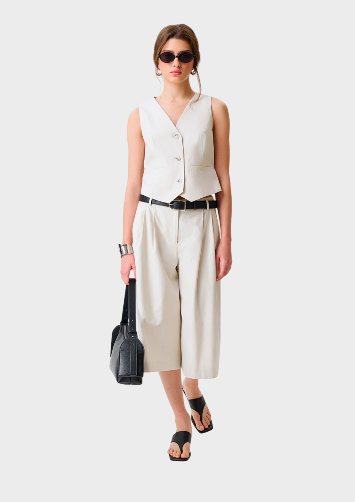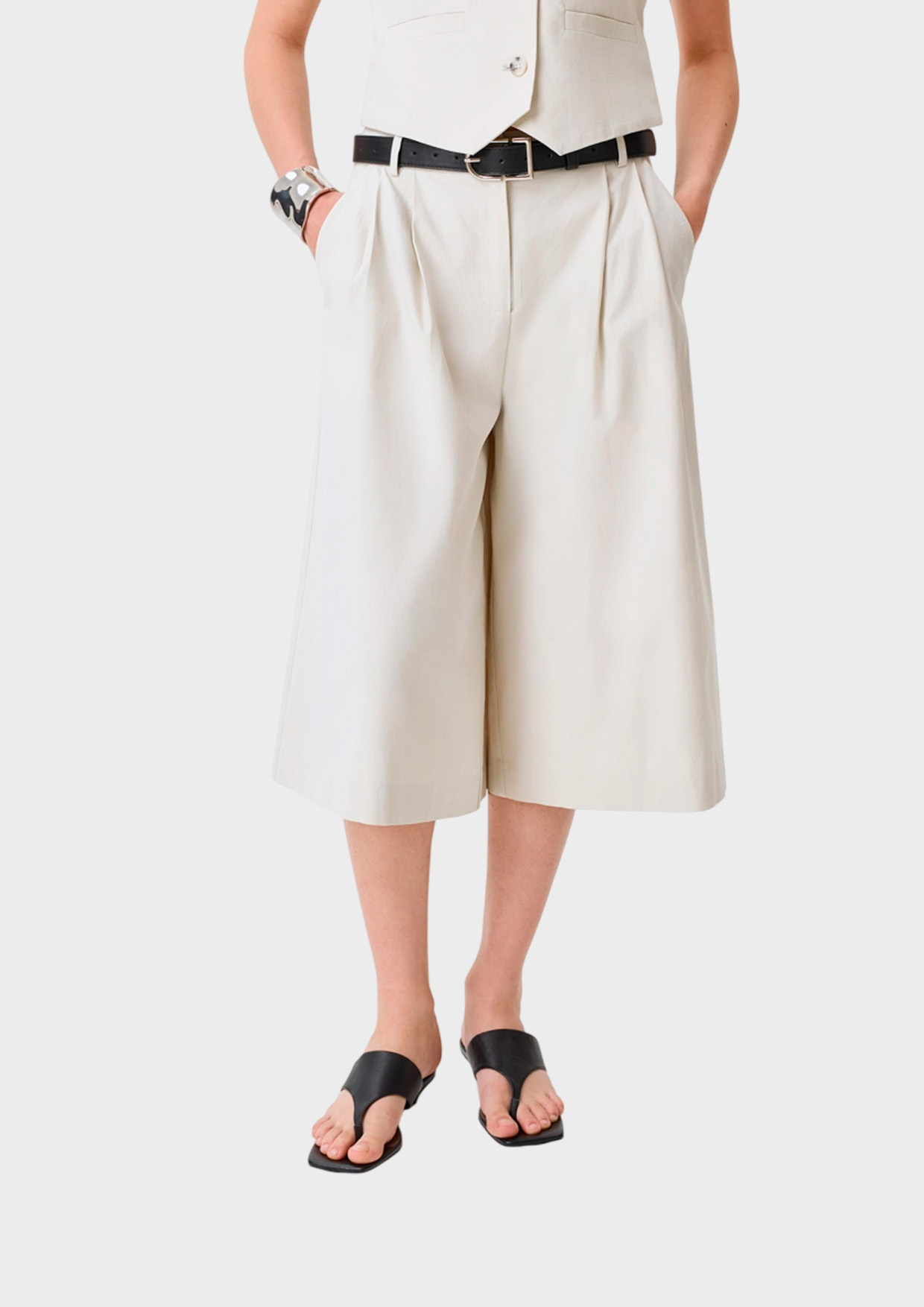 Удлиненные бермуды из лиоцелла и хлопка. Свободный силуэт. Застежка на молнию и пуговицу. Боковые карманы в швах. Дополнены складками от линии талии.