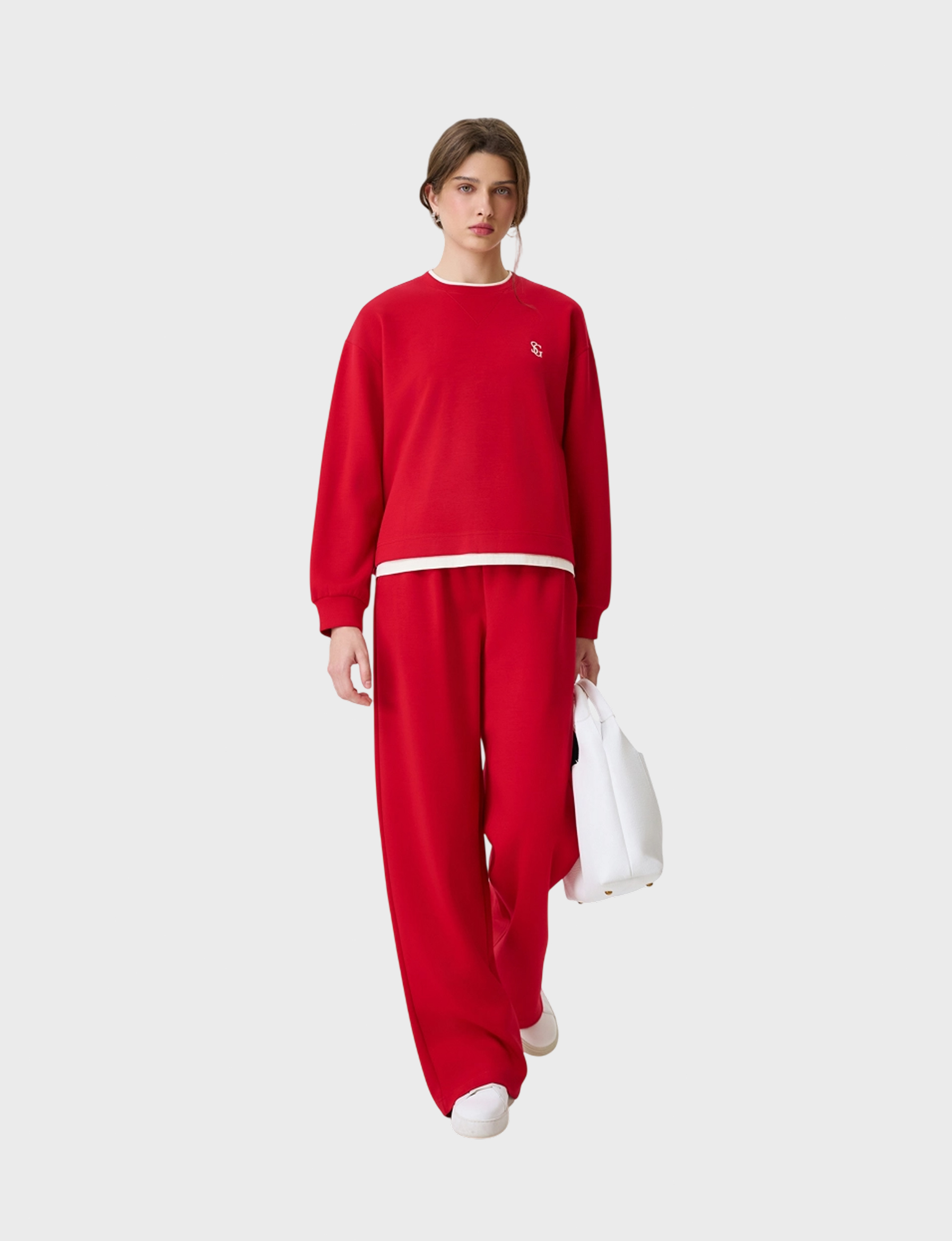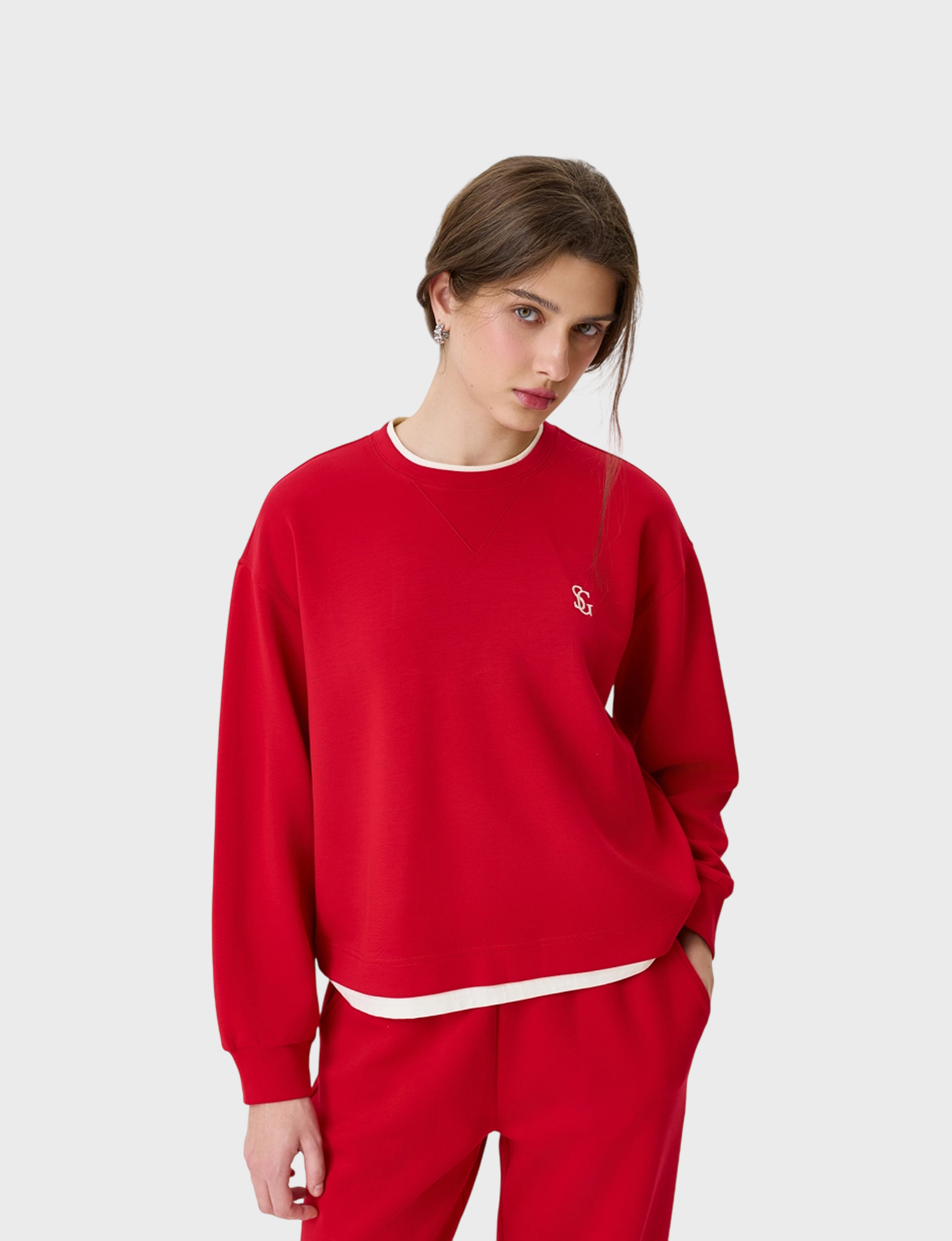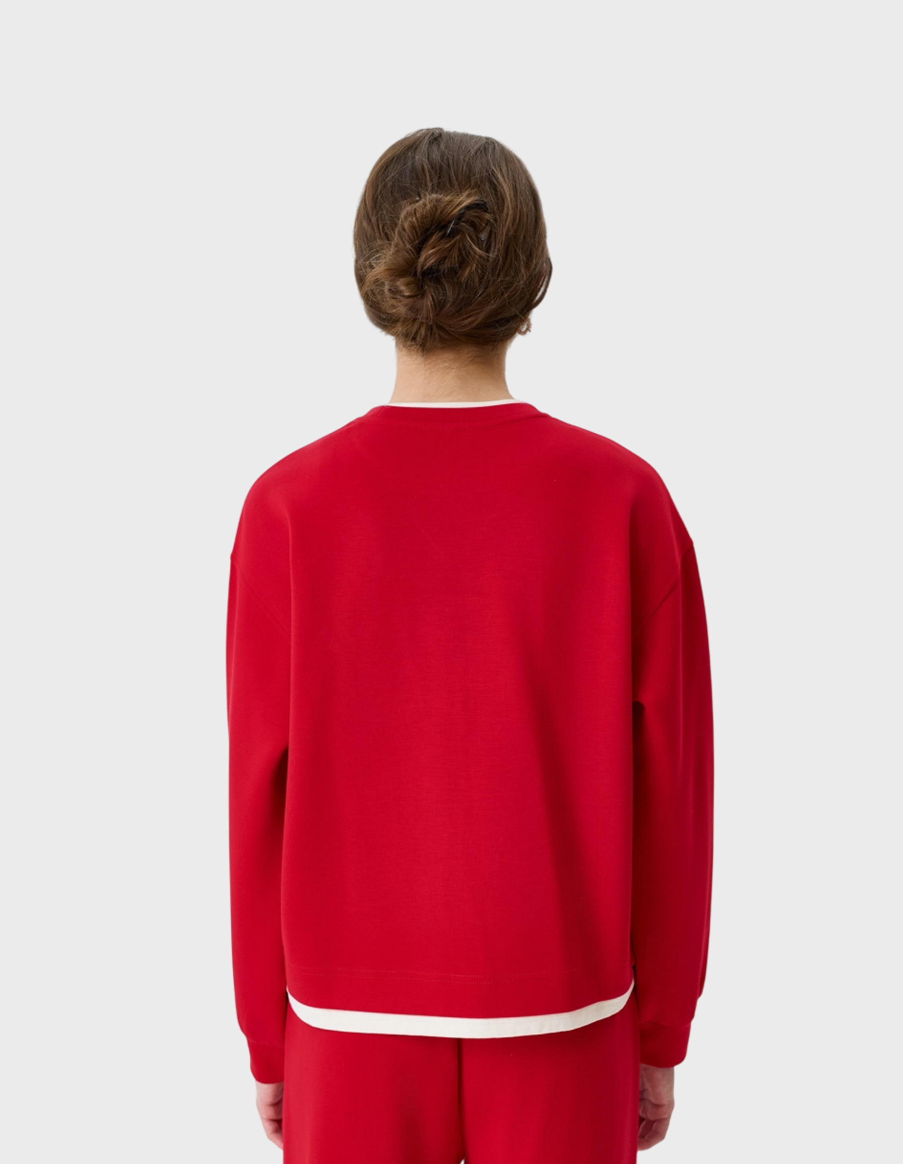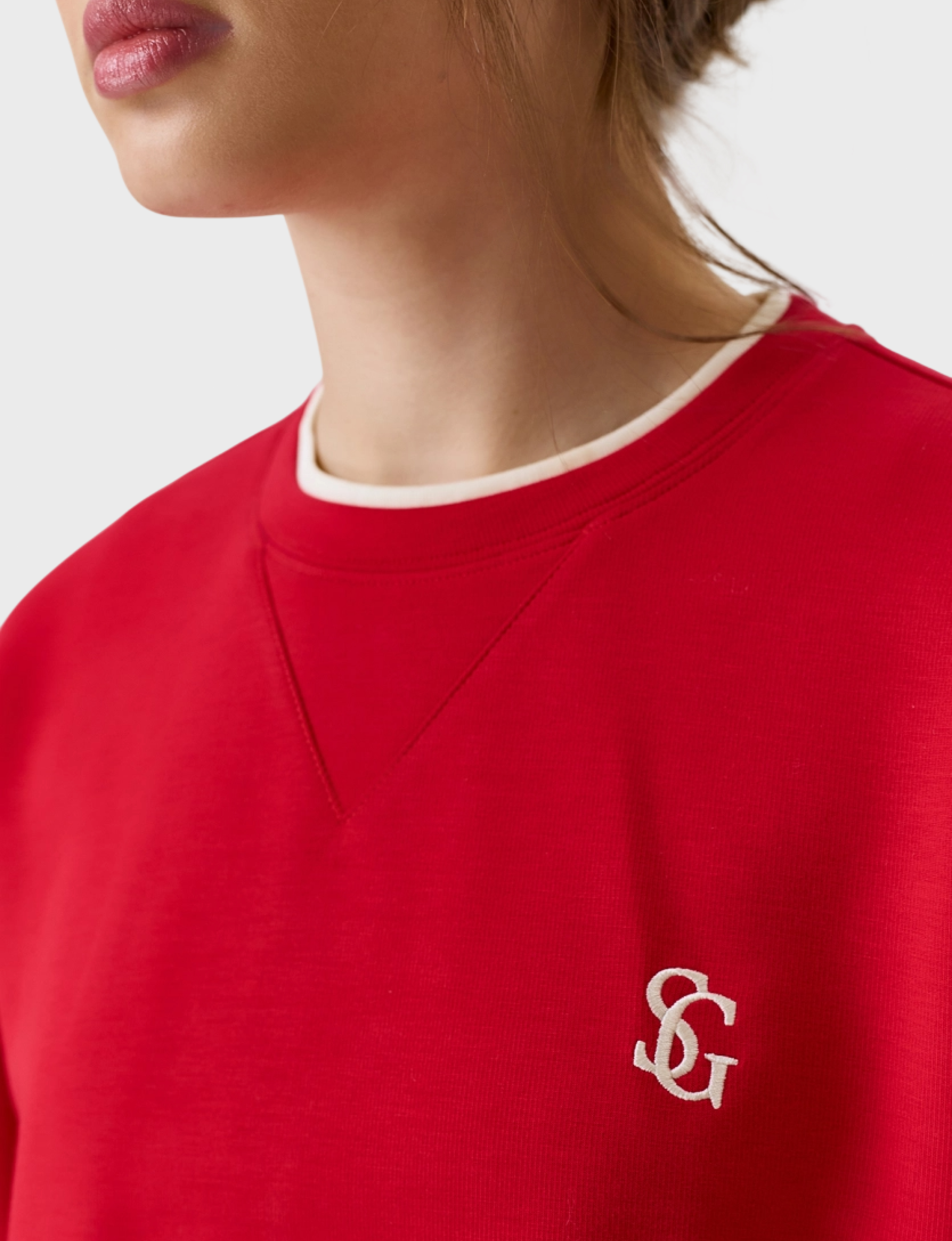 Яркий свитшот с контрастными акцентами. Свободный силуэт. Спущенная линия плеч. Контрастный кант по горловине и низу изделия. Круглый вырез. Дополнен контрастной вышивкой на груди. В составе вискоза.