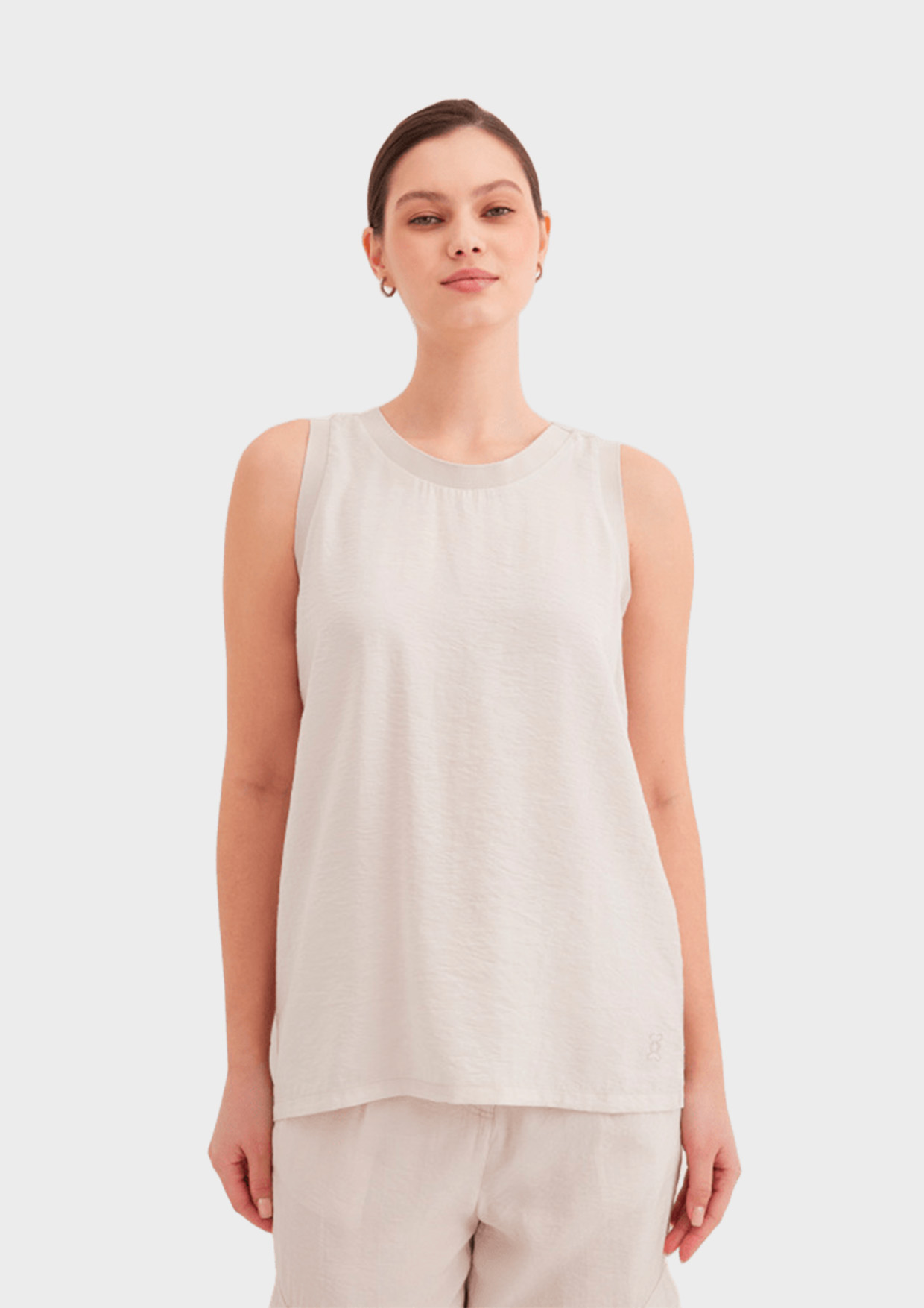 Прямой топ из смесовой жатой вискозы — это идеальный выбор для тех, кто ценит комфорт и стиль в повседневной одежде. Этот безрукавный топ, выполненный из легкой и дышащей ткани, подарит вам ощущение свободы и легкости в жаркие дни. Элегантная отделка резинкой по вырезу горловины и проймам добавляет изысканности и подчеркивает линию плеч, а разрезы по бокам не только придают модели динамичность, но и обеспечивают дополнительный комфорт при движении.