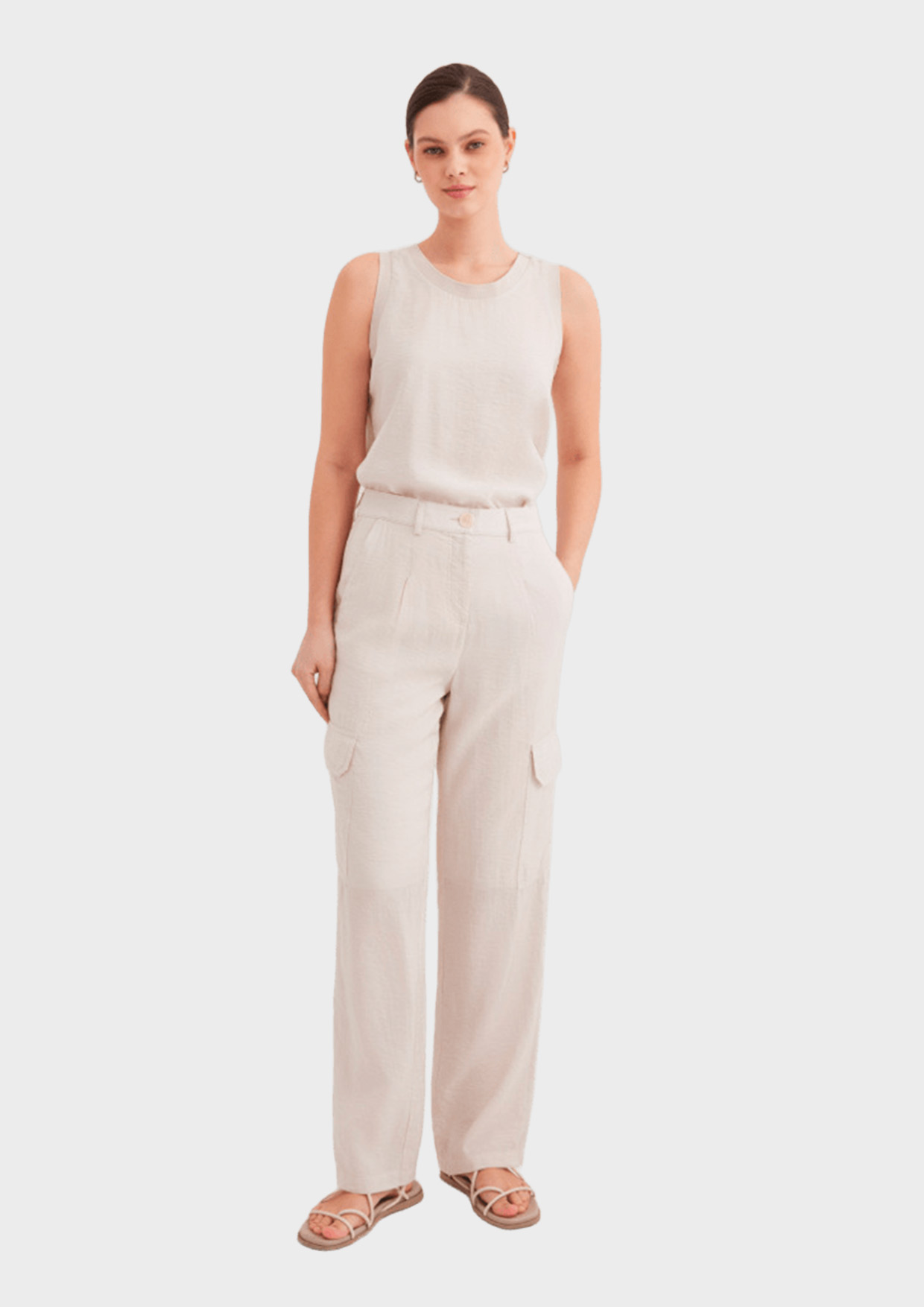 Брюки карго – это идеальный выбор для создания стильного образа. Прямой крой и аккуратные защипы придают им утонченный вид, а прорезные карманы и карманы с клапаном на брючинах добавляют функциональности. Изготовленные из мягкой смесовой вискозы, они приятно облегают фигуру и обеспечивают комфорт в течение всего дня. Высококачественные материалы гарантируют долговечность, а универсальный дизайн подходит для любого гардероба.