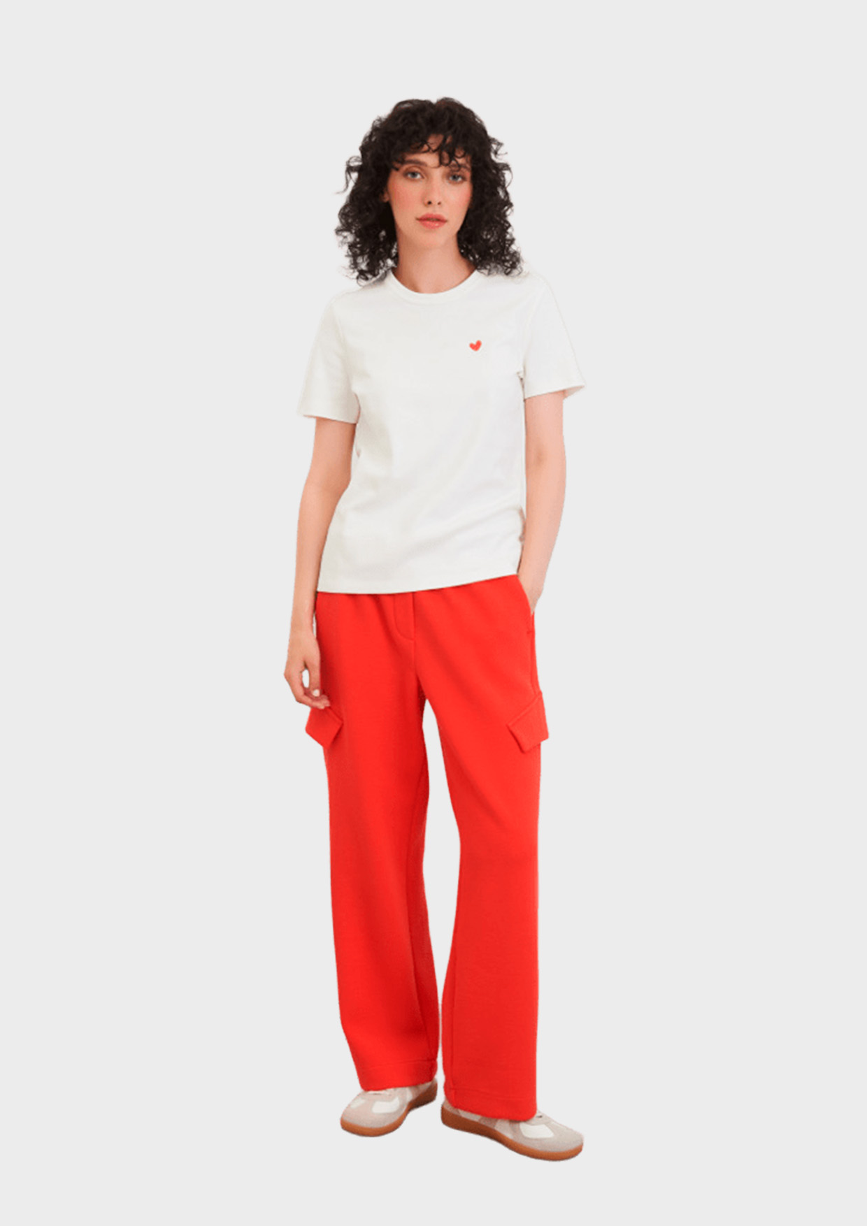 Прямая классическая футболка стандартной длины с круглым вырезом и коротким втачным рукавом. Дополнена вышивкой в форме сердечка спереди. Выполнена из хлопка.