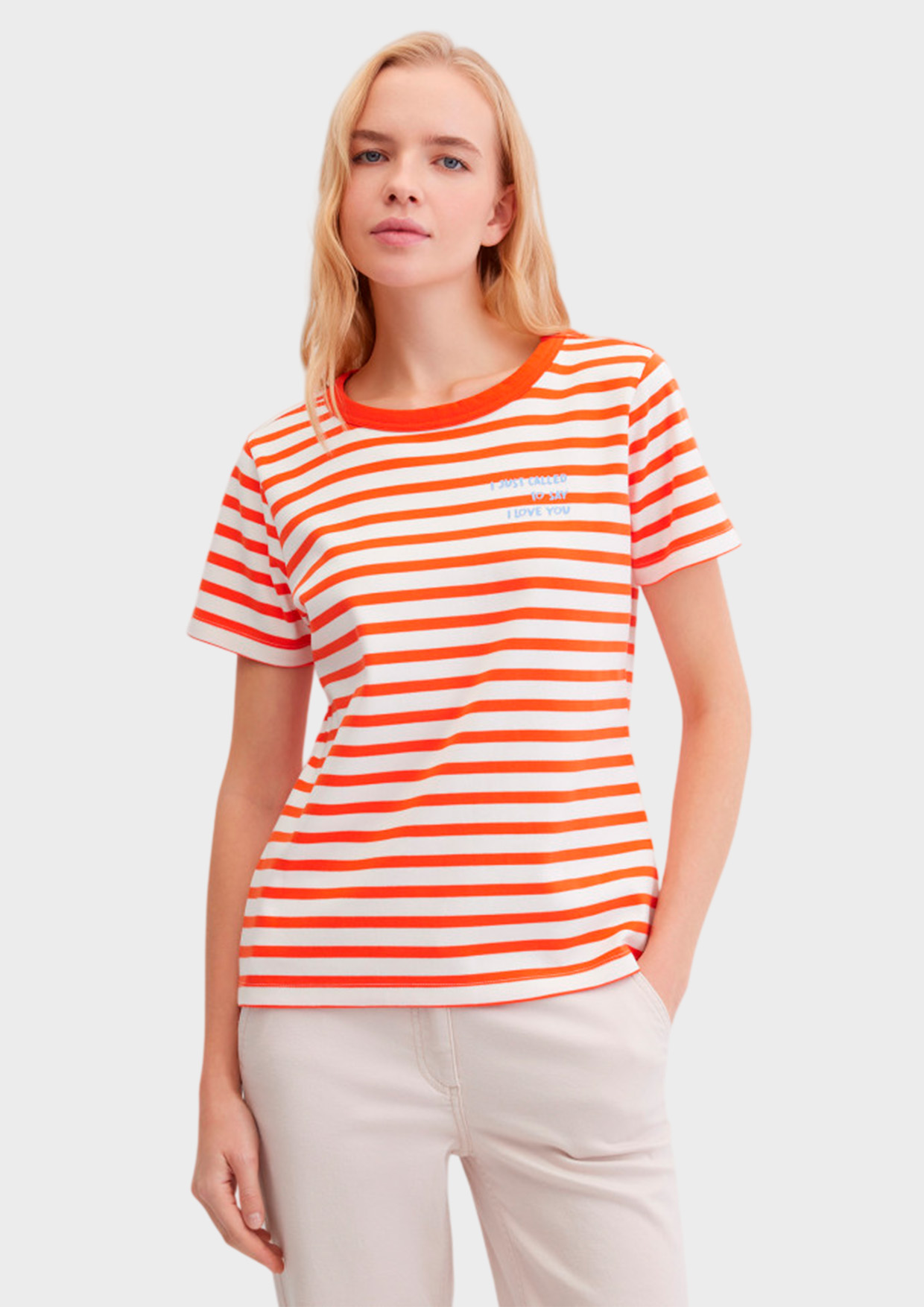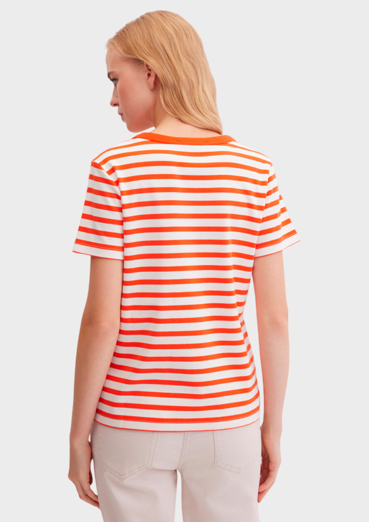 Базовая футболка полуприлегающего кроя выполнена из лёгкого стопроцентного эластичного хлопка в полоску, который обеспечивает отличную воздухопроницаемость, комфорт и мягкость в течение всего дня. Короткий втачной рукав и круглый вырез создают универсальный силуэт, подходящий для любых повседневных образов.